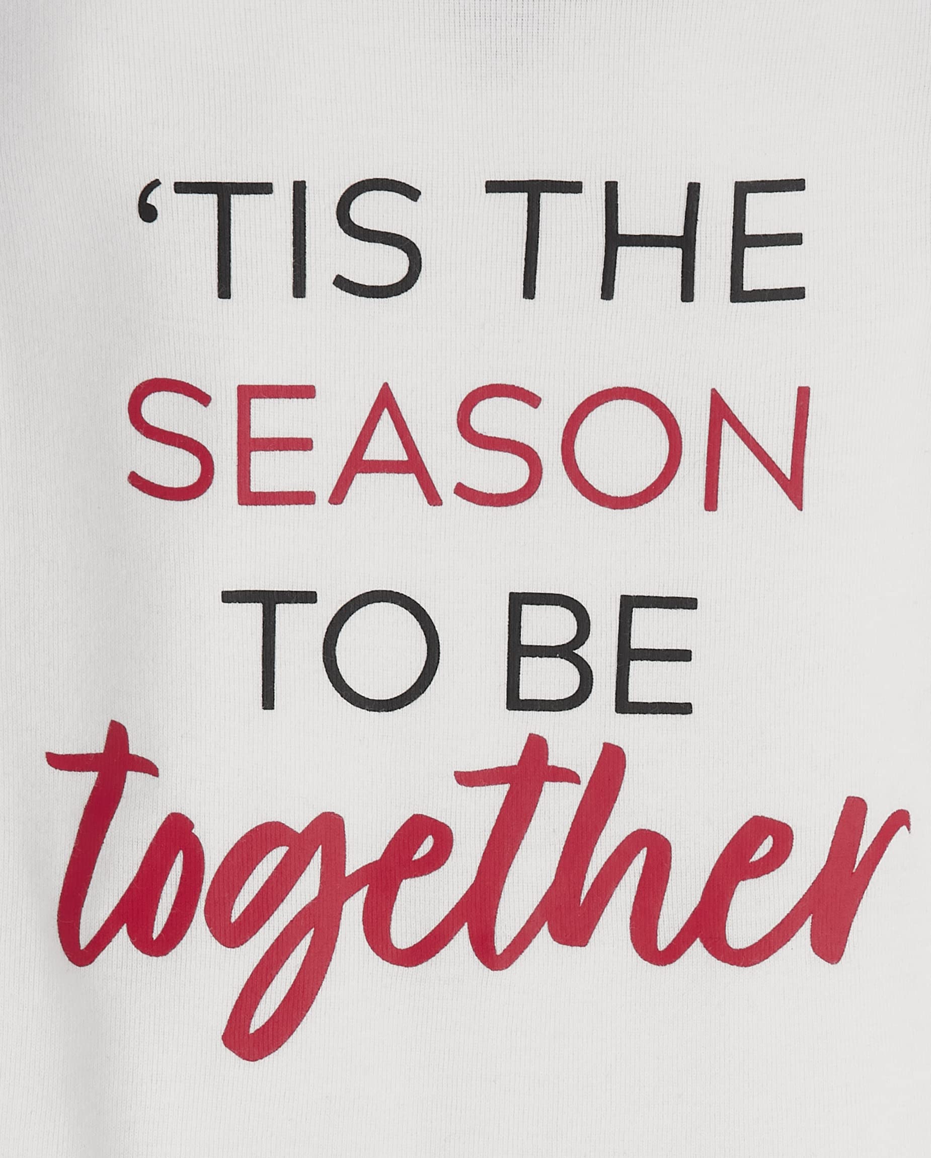 PAJAMA TOP — Features long raglan sleeves, rib-knit crew neck and sleeve cuffs and 'Tis The Season To Be Together' graphic design at front