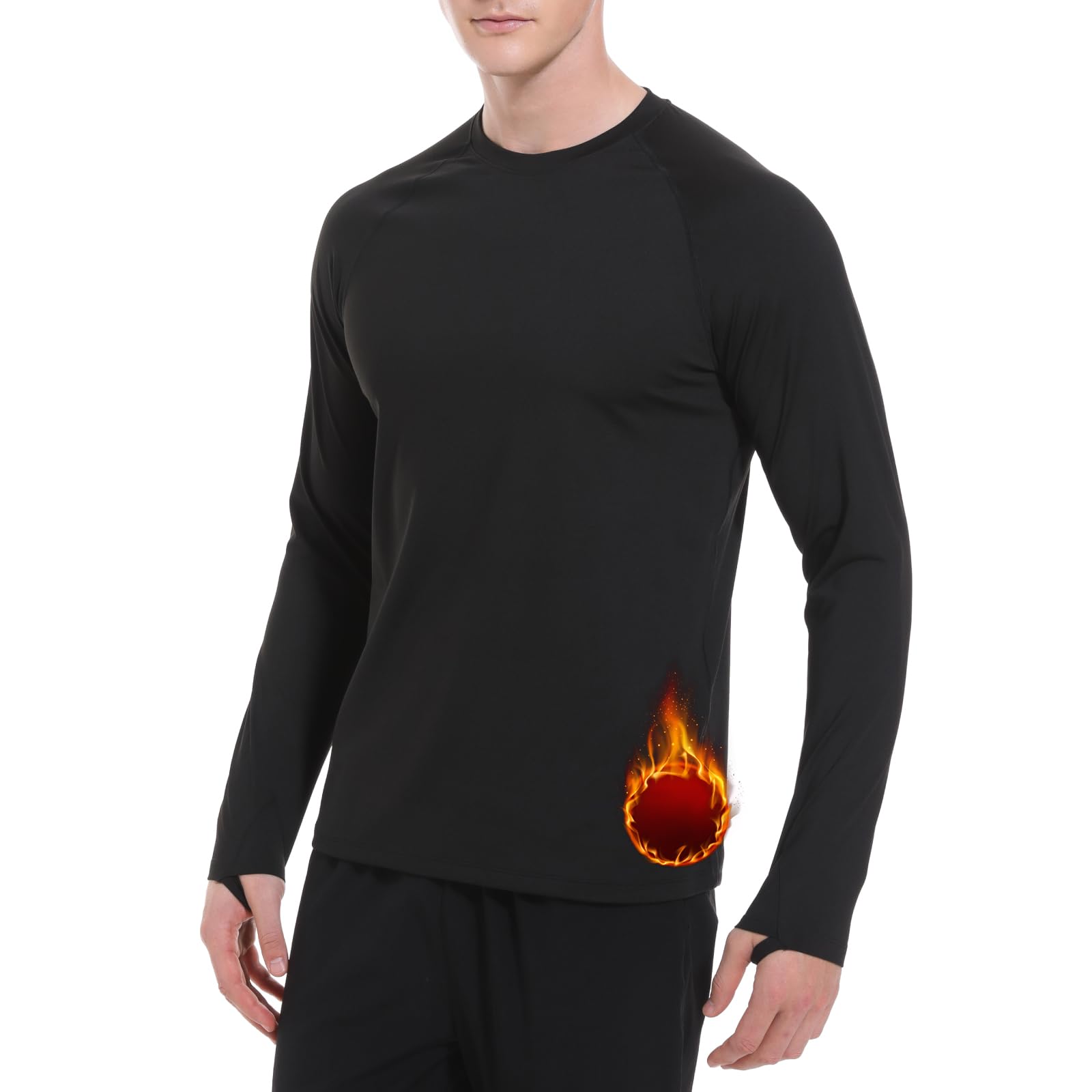 Classic Athletic Cut: Men's base layers shirts sit below your waist, cover your hip. With gentle compression, this mens running tops contour your body, provide the nearest warmth for the cold weather. Order size up for casual wear.