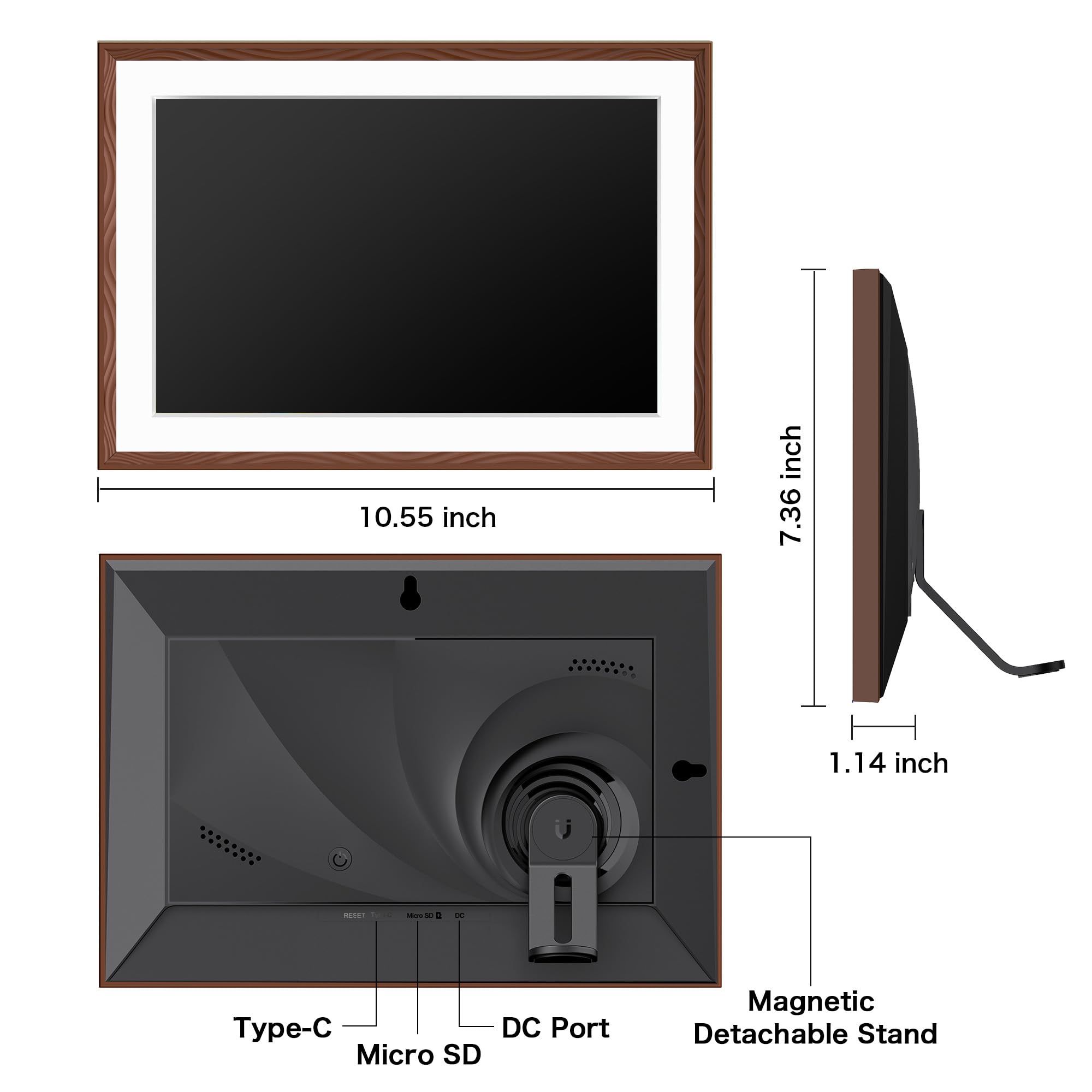 Sleek Design, Smart Features - This award-winning electronic picture frame enhances any room with its premium embossed design. The Frameo 10.1 inch smart WiFi digital photo frame boasts a 1280x800P HD touchscreen for crisp, vibrant images and easy navigation. Its versatile magnetic stand allows quick orientation changes, while wall-mount options provide flexible placement. Designed for lasting quality, this electric frame beautifully displays your favorite memories as stunning slideshows.