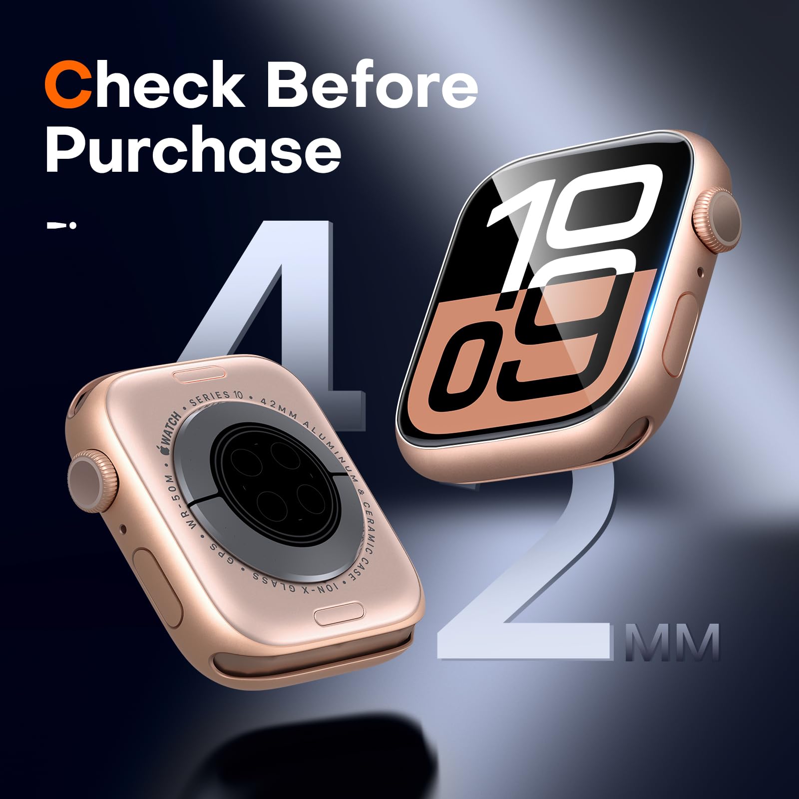 Compatibility: Specially designed for Apple Watch Series 11/10 42mm (2025/2024) ONLY, Includes 8 packs of TPU screen protectors. [NOT for Series 3/2/1 42mm or any other models] Please check your Apple Watch model & size before purchasing
