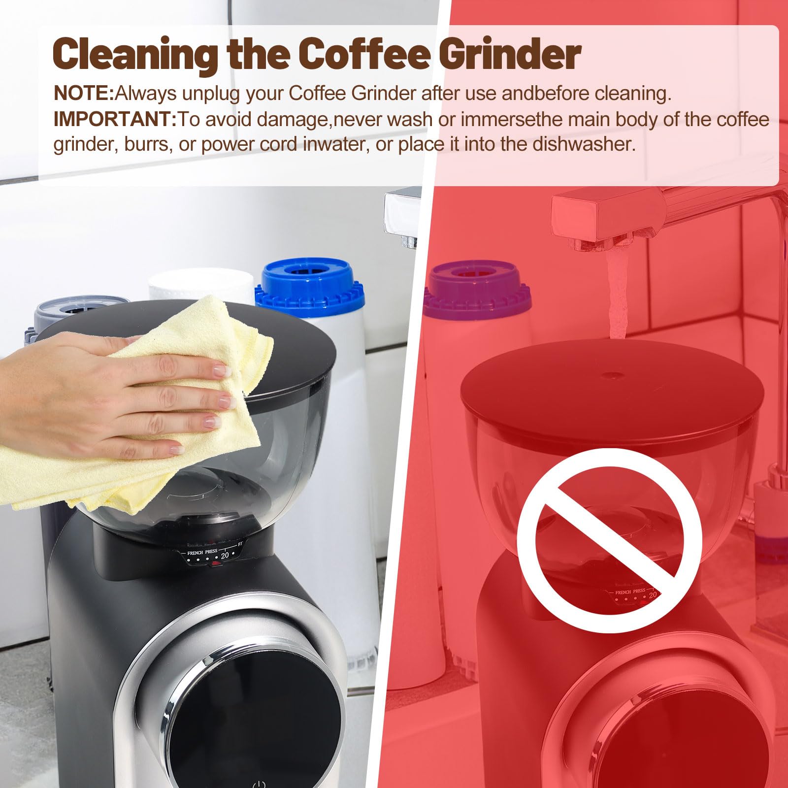 Easy to Clean and Maintain:Our electric coffee grinder is designed for easy cleaning. Removable Bean Hopper, upper burr, and cleaning brush included (under Bean Hopper Lid) for effortless cleaning.The Porta - Filter Holder and Grinding Chamber can be easily removed, and you can use the included cleaning brush to get rid of any coffee residue quickly. This ensures that your grinder is always in top - notch condition, ready to produce fresh and delicious coffee whenever you want