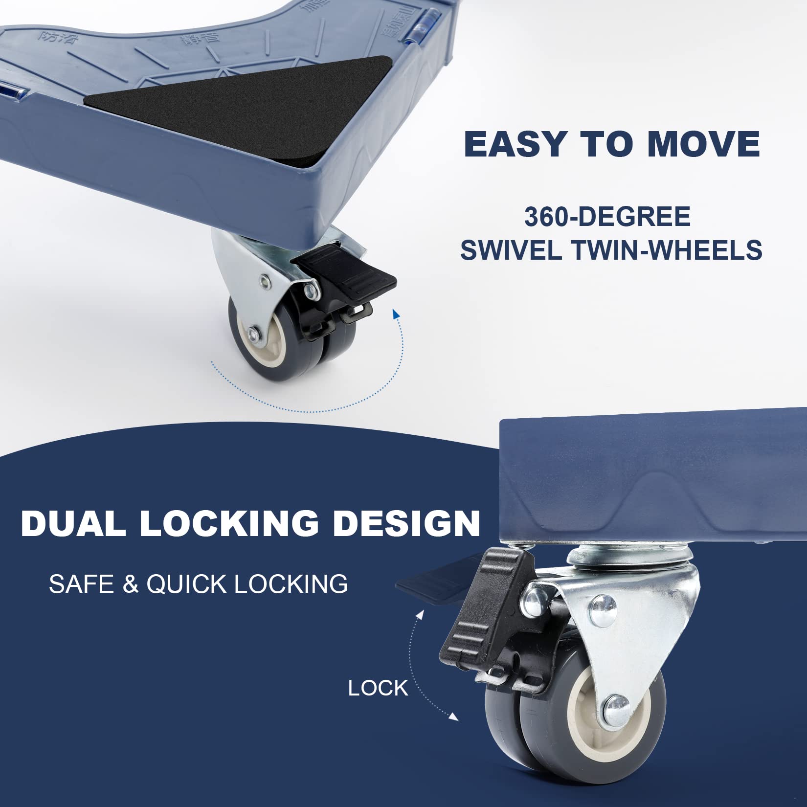 EASY TO MOVE & FIX: WEIBIDA's mobile base stand has 360-degree swivel wheels for smooth mobility, plus dual-locking casters to easily position and secure it. The dolly is built with 4 sturdy PVC panels and 4 stainless steel bars, supporting up to 400 lbs