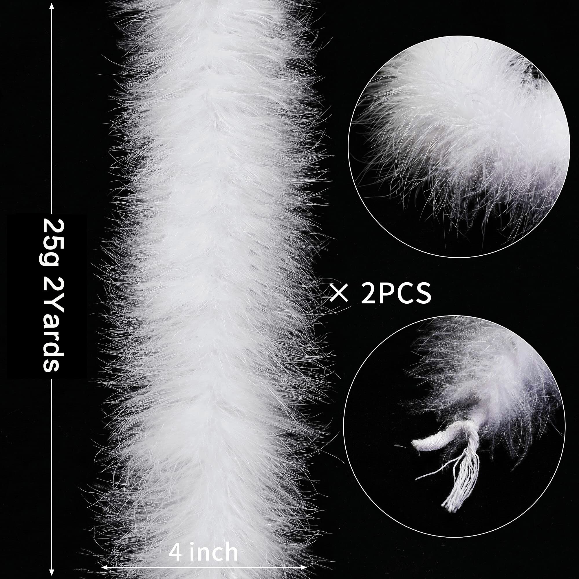Great Value 2-Pack: 2 pcs natural fluffy feather boas in 1 pack, 50g weight total, Each 25g and 2 yards long, 4 inches wide.More quantities to meet your production needs