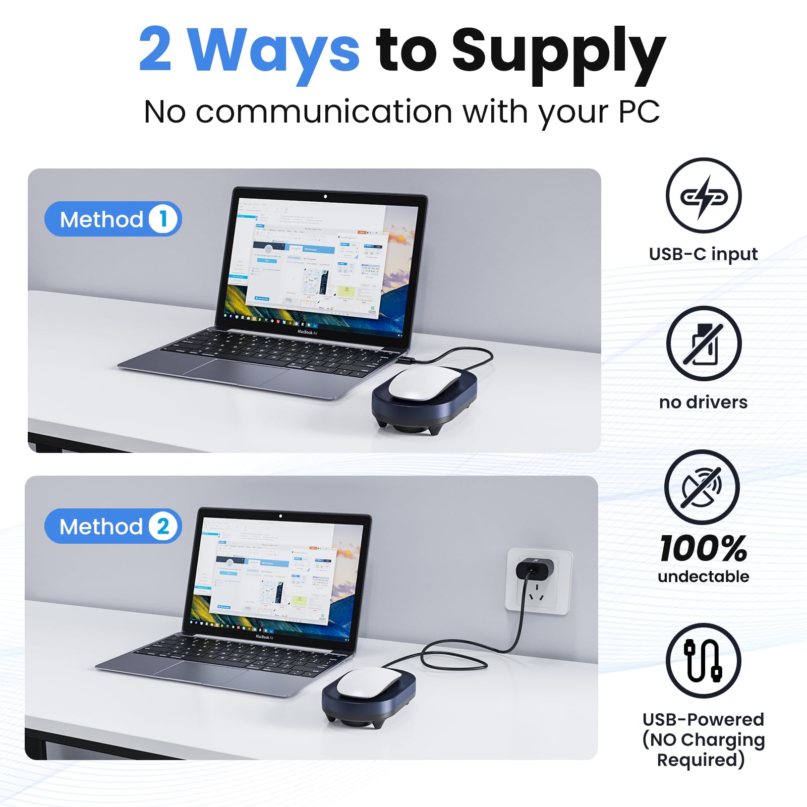 100% Undetectable Design Zero Computer Connection Required: Power this mouse shaker via any USB adapter,USB-Powered (NO Charging Required) Plug & Play —no direct connection to your computer or laptop. Its physical movement simulation avoids software/hardware detection, making it IT-proof for corporate environments, remote work, or secure systems.