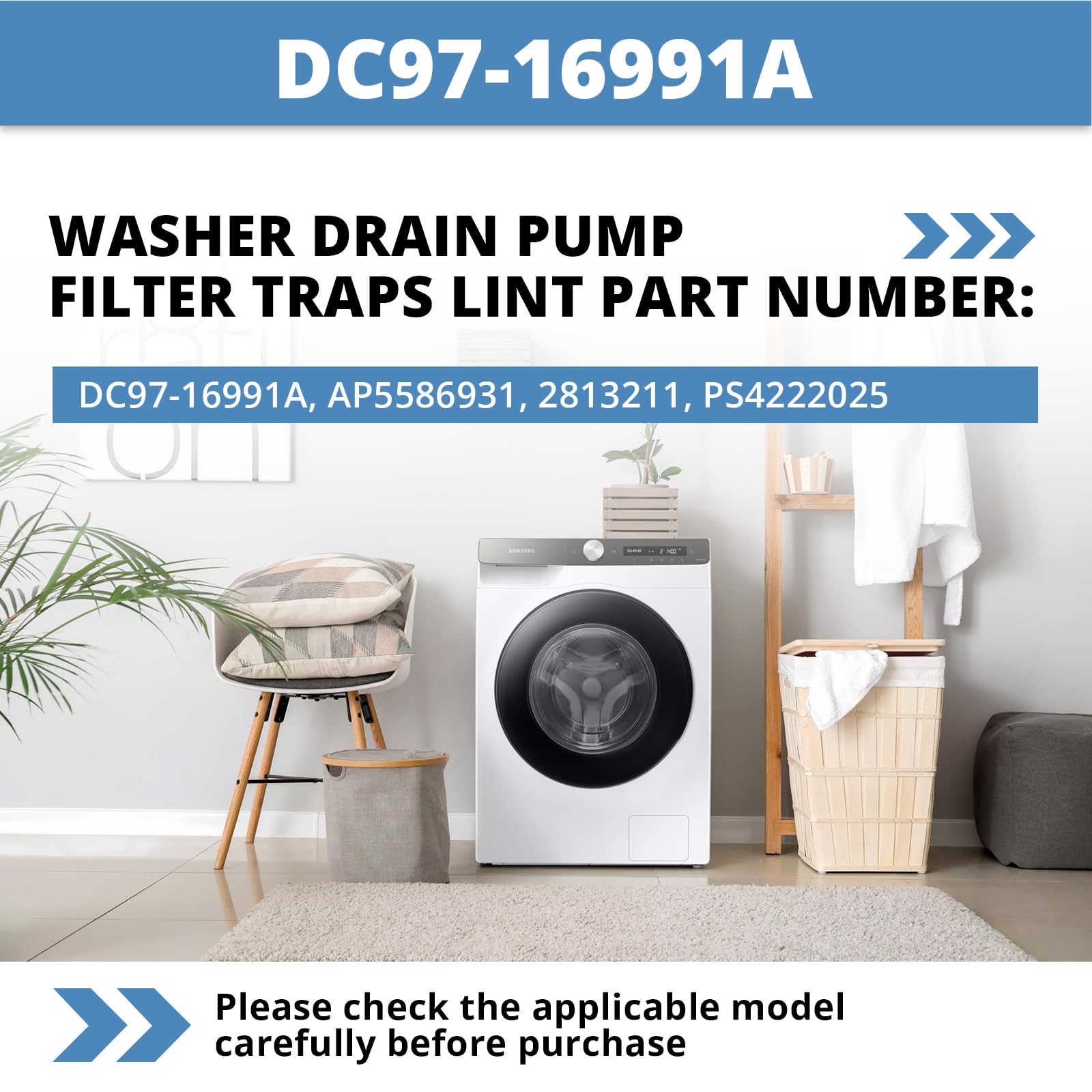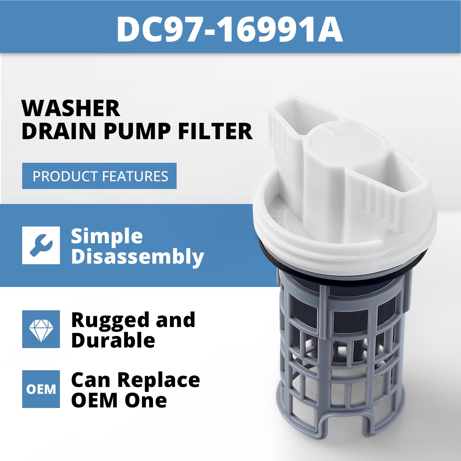 DC97-16991A Fit for Samsung Washer Filter Replacement Model: WF56H9100AV/A2 WF457ARGSWR/AA WF221ANG/XAA WF431ABP/XAA WF431ABW/XAA WF455ARGSGR/AA WF448AAP/XAC WF448AAP/XAA WF438AAR/XAA WF448AAE/XAA WF210ANW/XAA WF395BTPASU/A1 WF393BTPARA/A1 WF220ANW/XAC WF220ANW/XAA WF393BTPAWR/A2 WF393BTPAWR/A1 WF457ARGSG WF405ATPAWR/AA WF405ATPAWR/A2