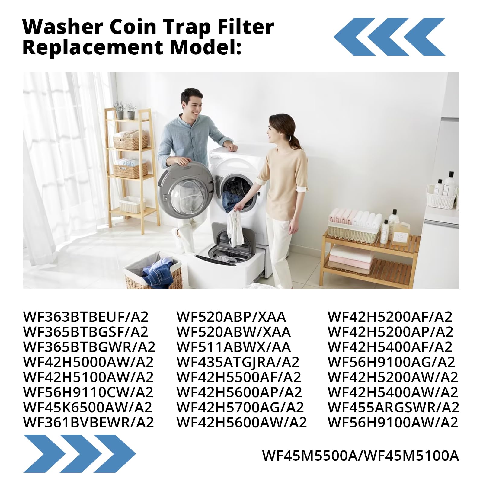 Washer Coin Trap Filter Replacement Model: W45R6100A WF50K7500AW WF45K6500AW/A2 WF361BVBEWR/A2 WF363BTBEUF/A2 WF365BTBGSF/A2 WF365BTBGWR/A2 WF42H5000AW WF42H5000AW/A2 WF42H5100AW/A2 WF42H5200AF/A2 WF42H5200AP/A2 WF42H5200AW/A2 WF42H5400AF/A2 WF42H5400AW/A2