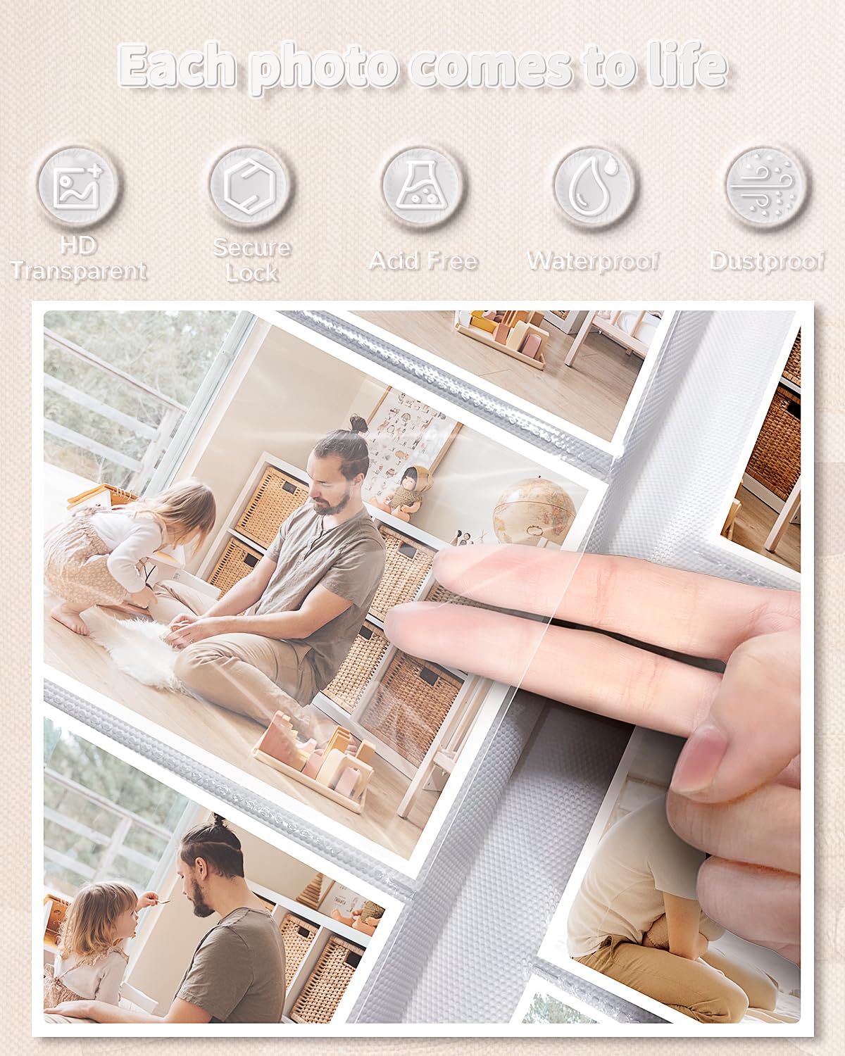 🧊free Pages:The album's white inner pages are made of acid-free and PVC-free materials, which are dust-proof, water-proof, and air-resistant. These materials won't damage your photos and will help preserve your precious memories for a long time.