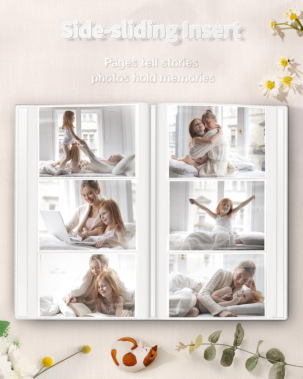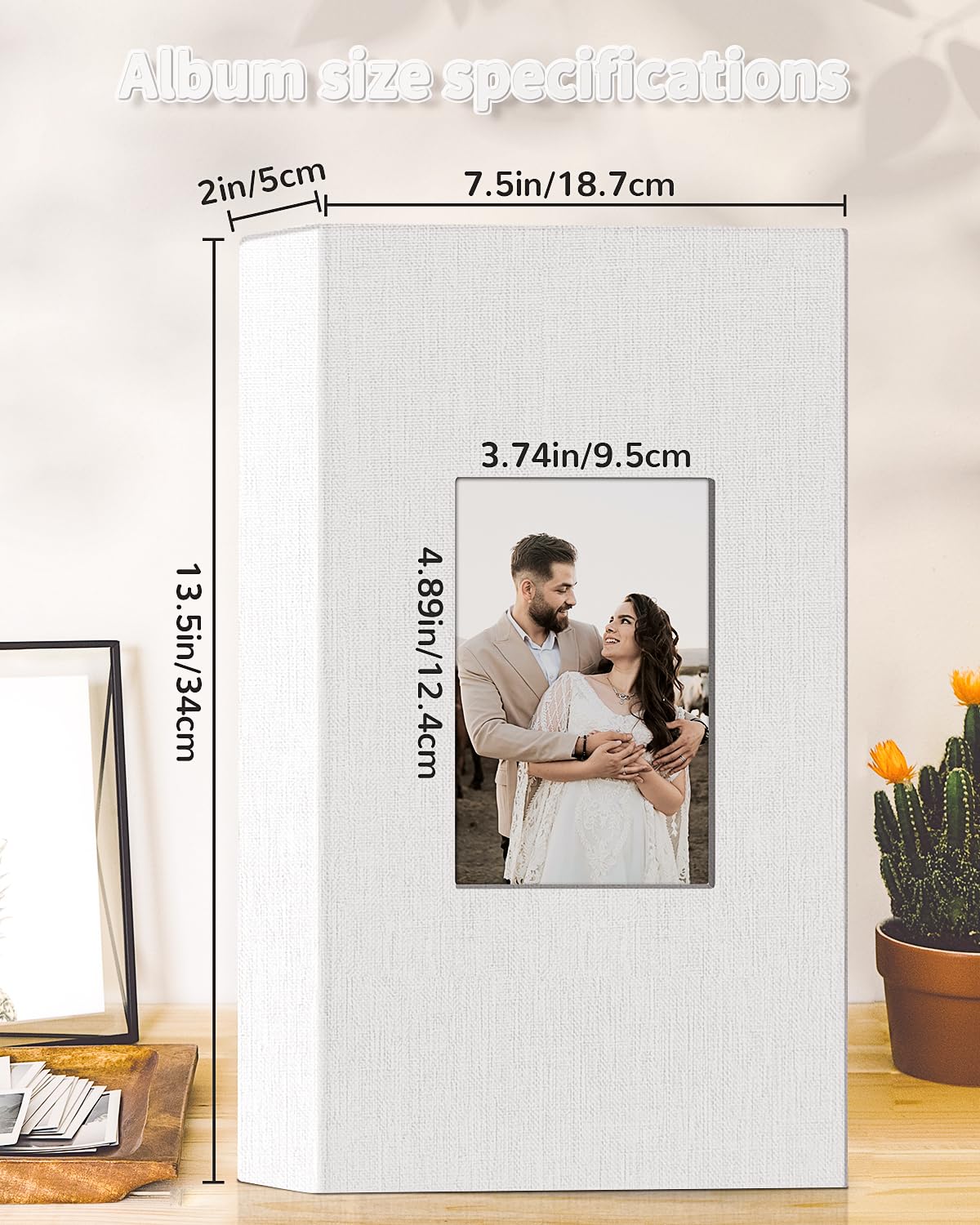 📏Album Size:The album measures 13.5 x 7.5 x 2 inches in size. It features a convenient slip-in design that can horizontally hold 300 4x6 inch photos, with each page holding 3 photos for a total of 50 sheets/100 pages.
