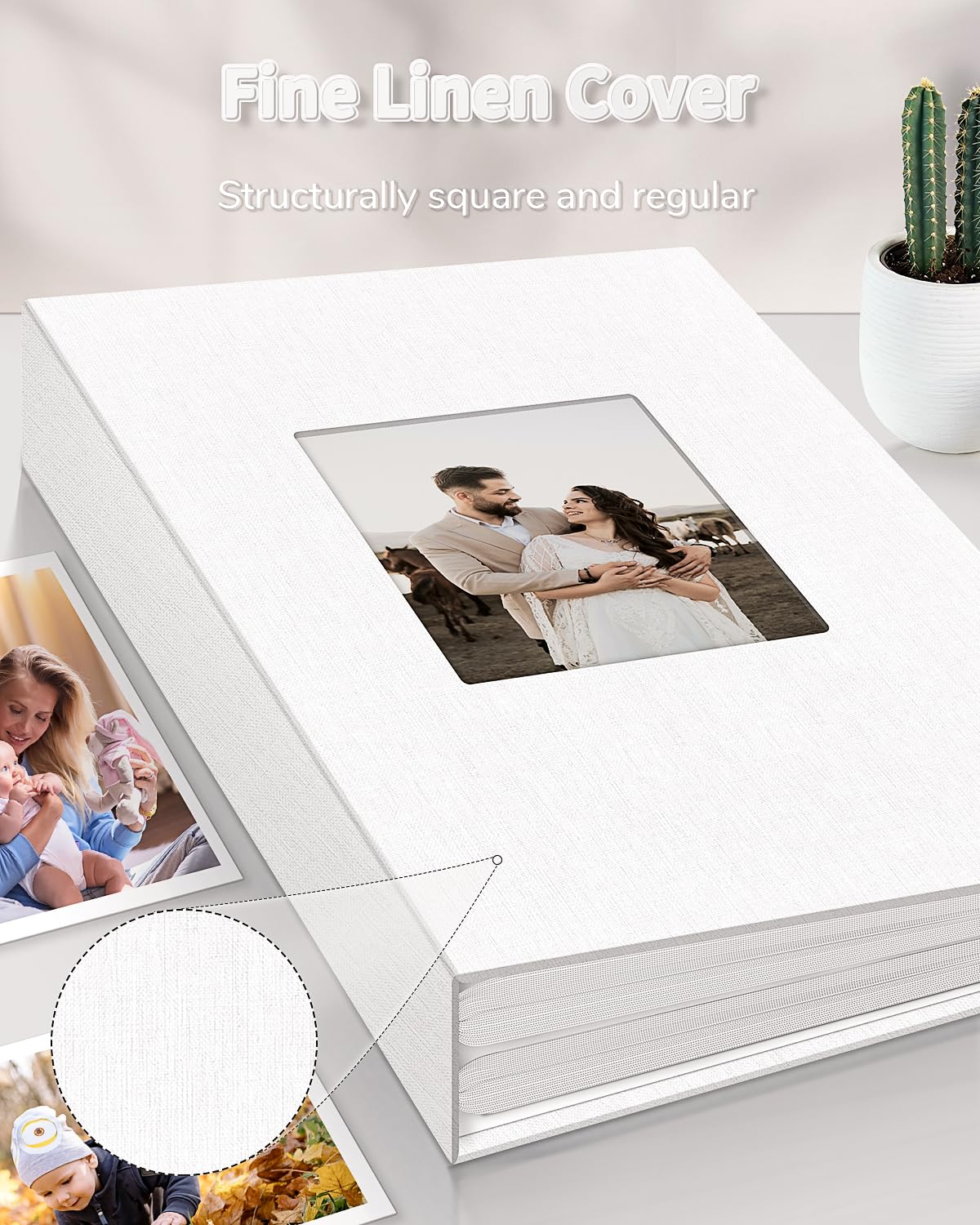 🔥Quality Linen Cover:The album features a linen hardcover that feels comfortable to the touch, and is sturdy and durable. The album cover also includes a front window pocket (measuring 3.74 x 4.89 inches) where you can display your favorite photo as the cover of the album.