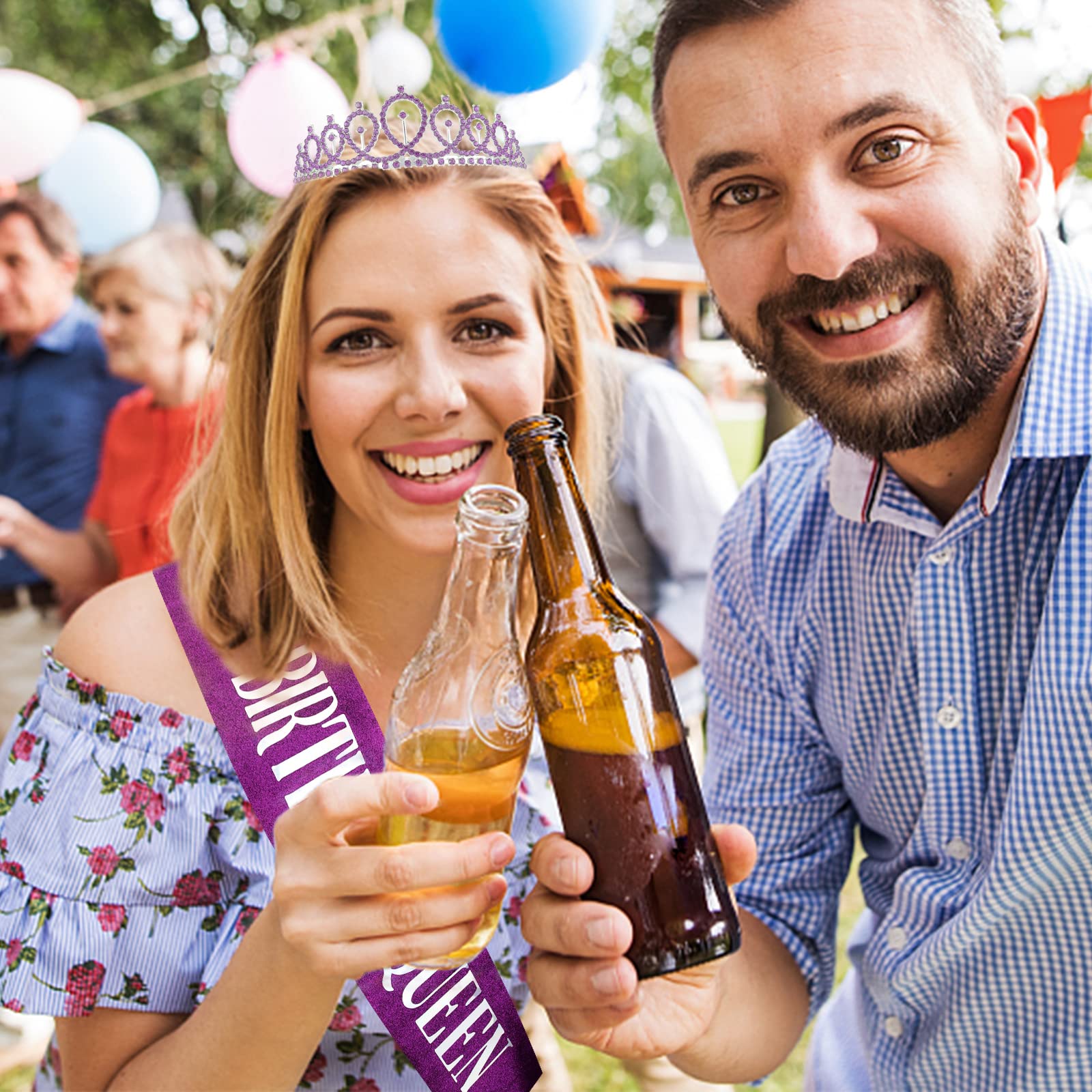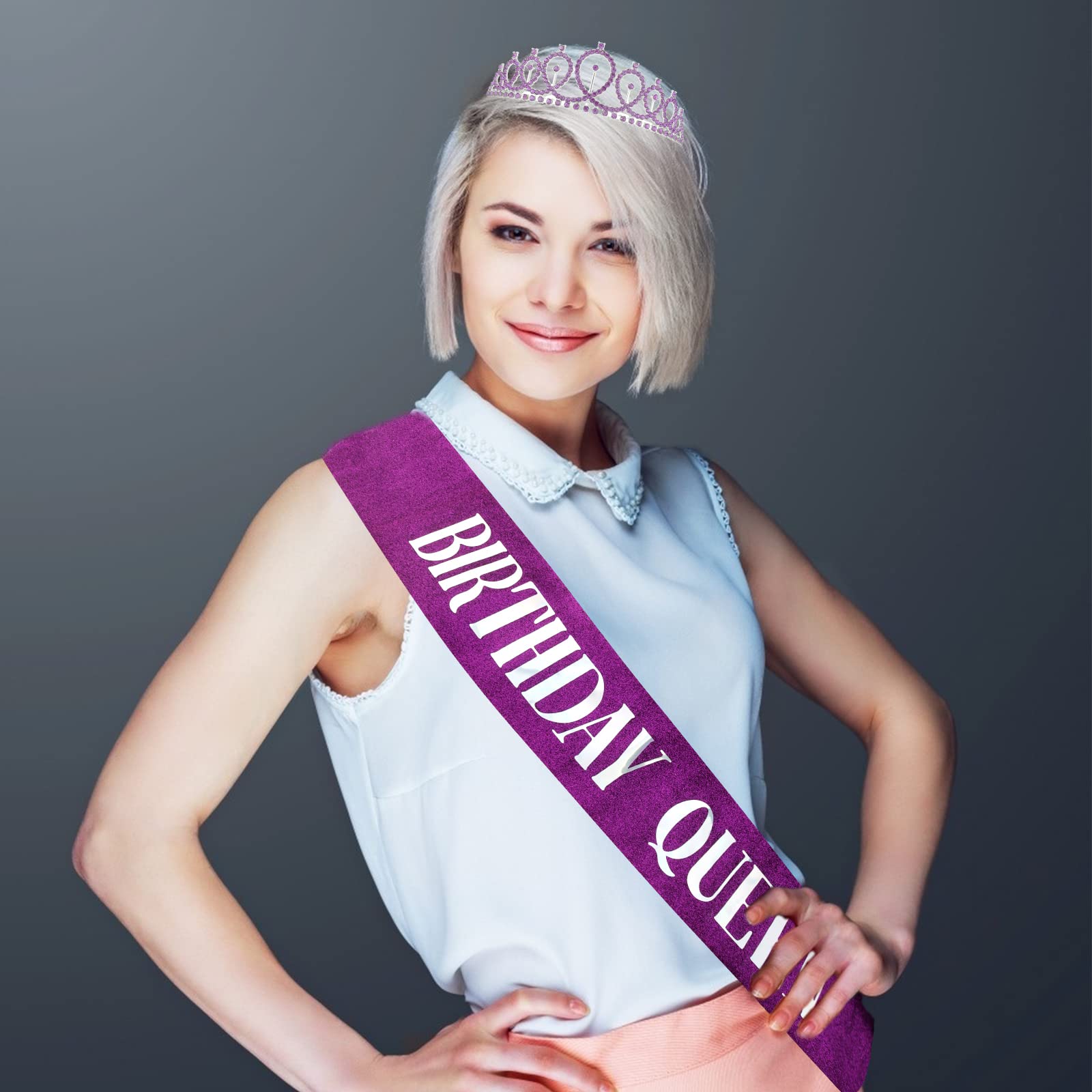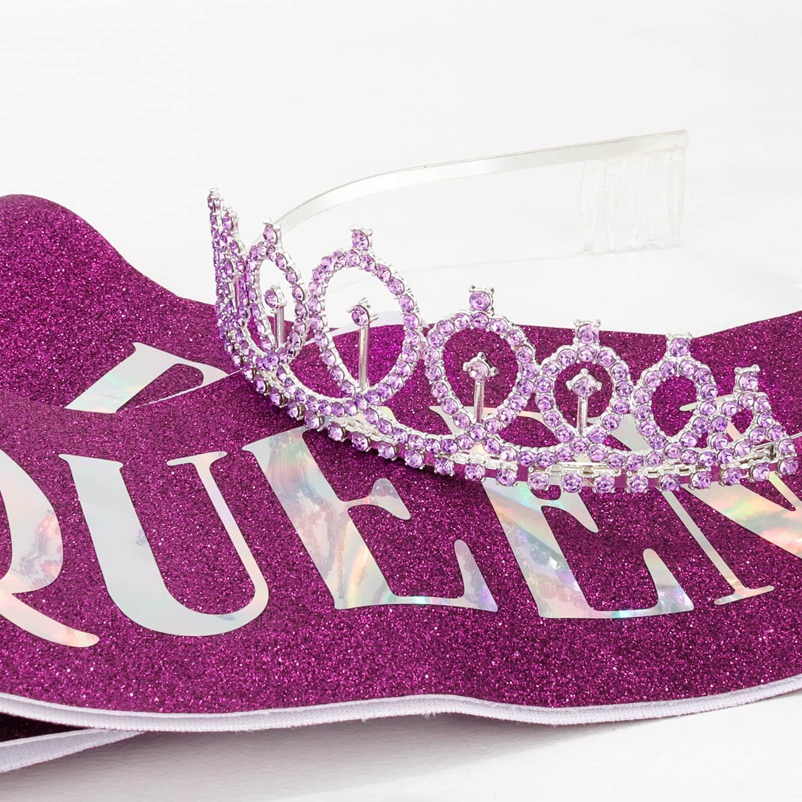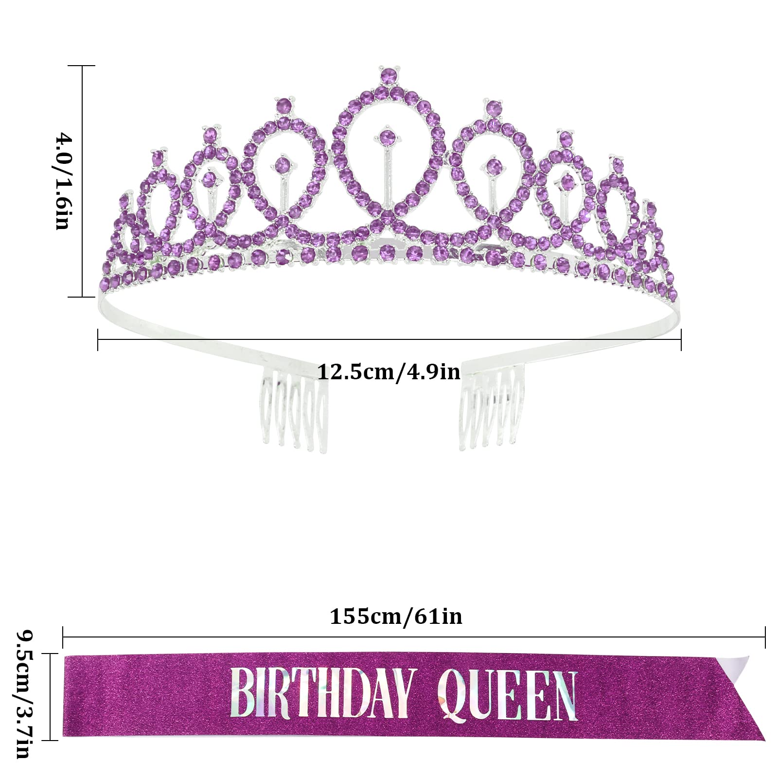 One Size Fits All: With 61” length, our birthday sash fits all type body figures. It can be easily adjusted by a clip. The birthday crown comes with comb design, they are suitable for all kinds of hair and stay in place.