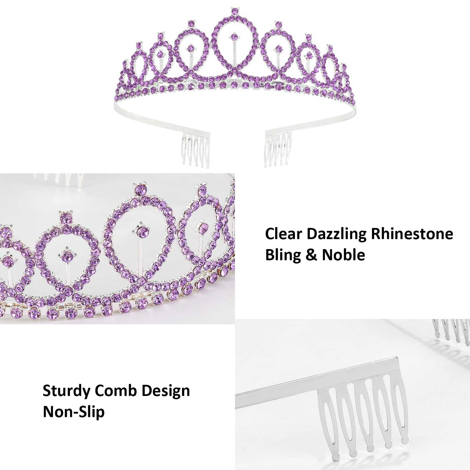 Delicate Rhinestone Crown: Made of sturdy sliver alloy, encrusted with dazzling purple rhinestones. Delicate designed for birthday girl specially. Perfect birthday decorations for her cherish one-year-once birthday. Makes the girl the most special one in crowd.