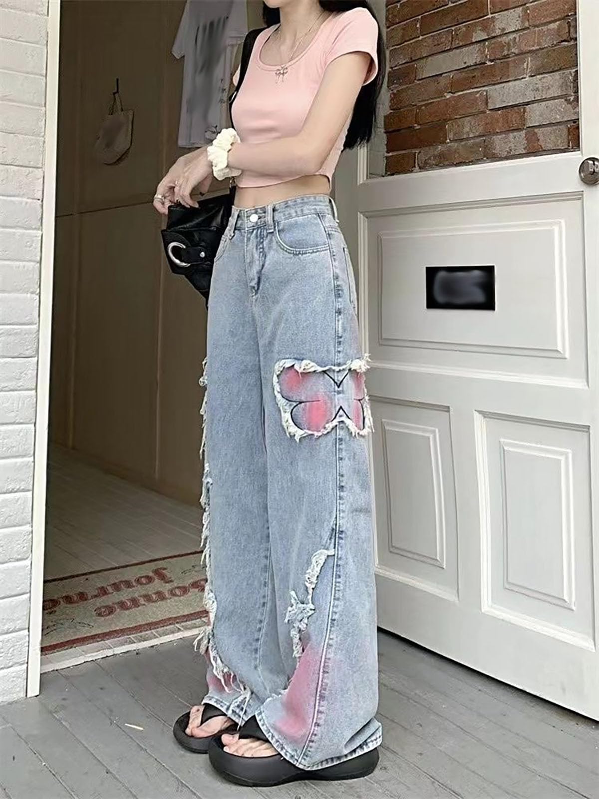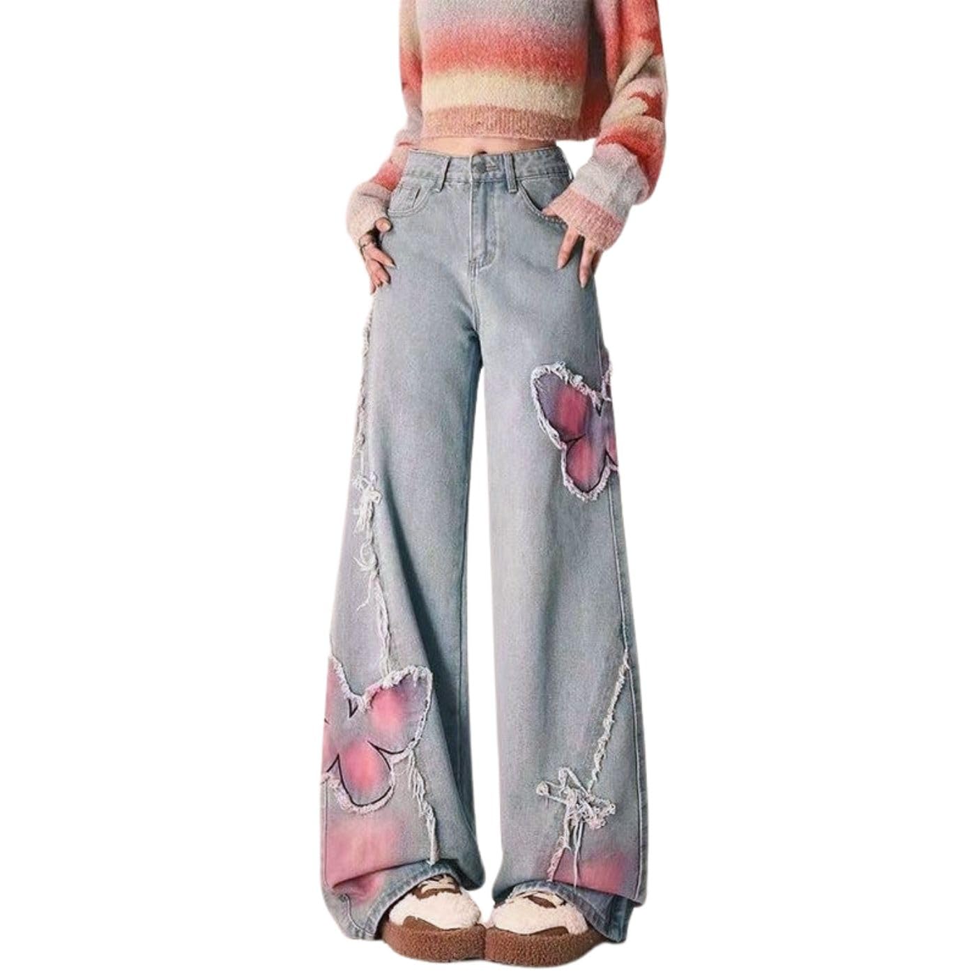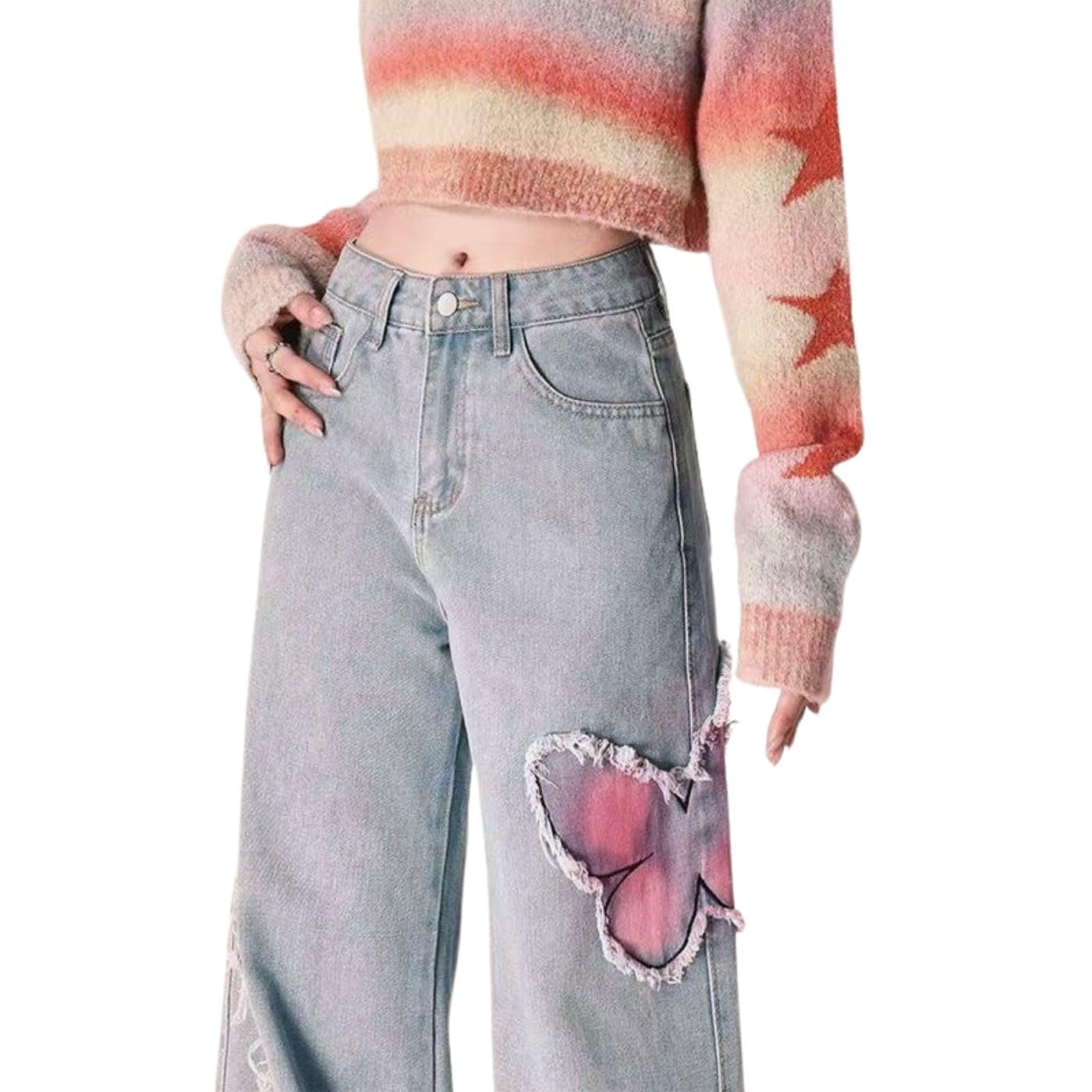 Pants Fabric: Our grunge butterfly jeans are so comfortable,soft, and lightweight skin feel. They'll become your go-to denims jeans