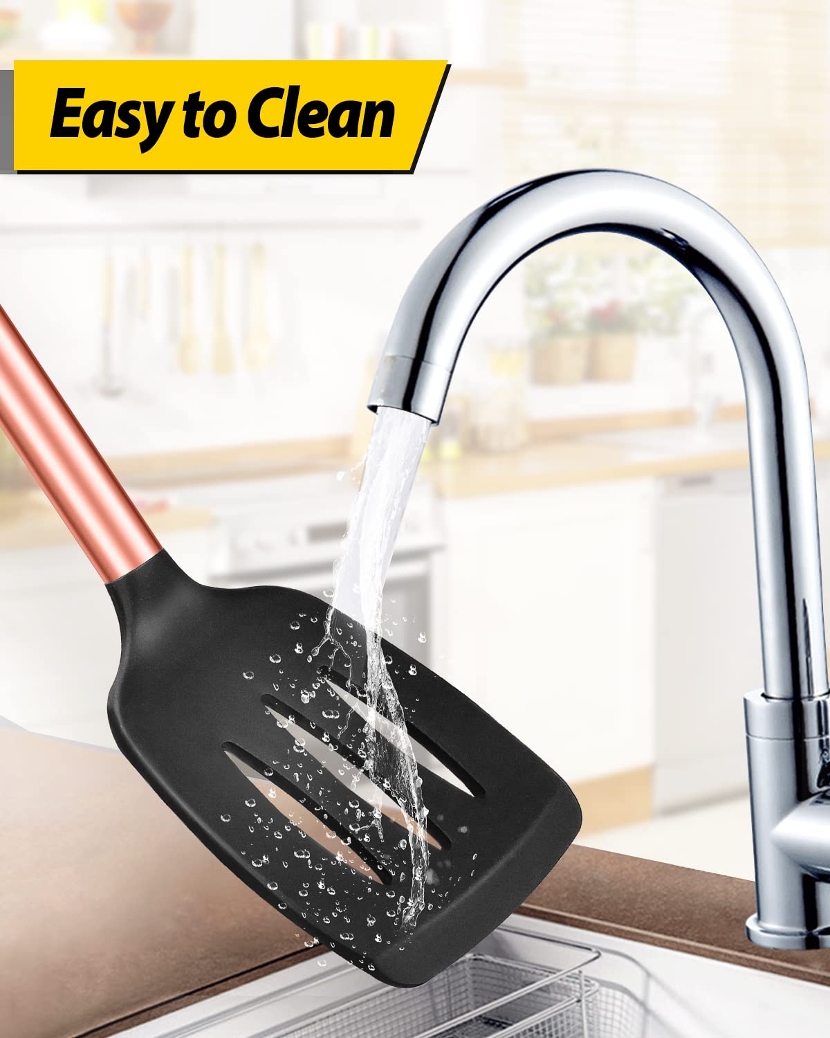 Thoughtful Design : The good-quality 18/8 stainless steel keeps you away from the trouble of kitchen utensils rusting or breaking; This anti-scald silicone handle is not easy to conduct heat and is more comfortable to hold than traditional utensils