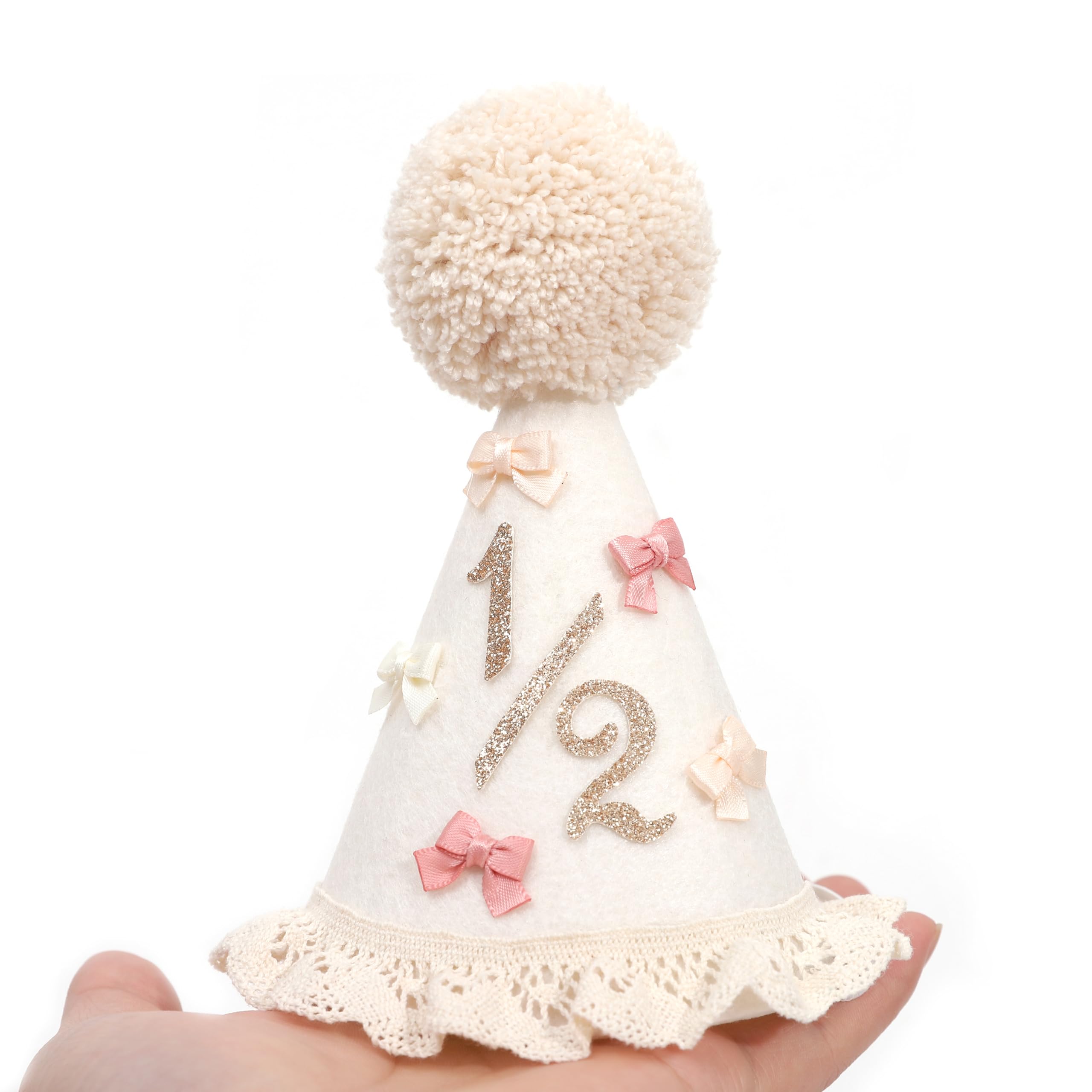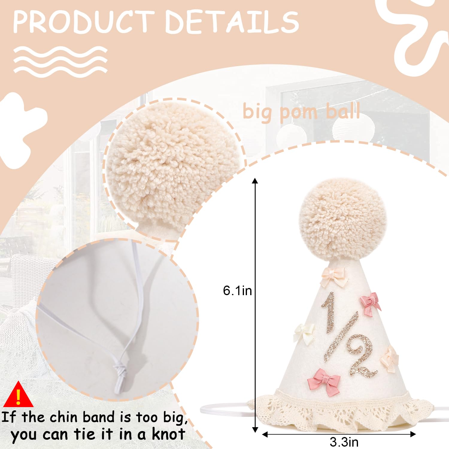 Adorable Bow Design: This charming 1/2 birthday hat features an elegant bow theme with multiple mini satin bows in soft pastel colors, creating a sweet and feminine look that perfectly complements any girl's birthday outfit.