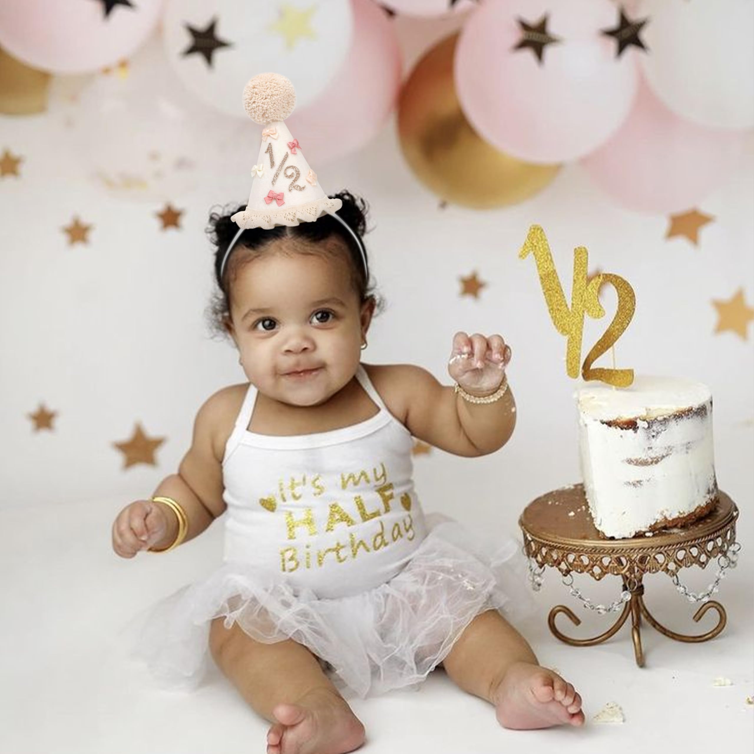 Sparkly “1/2” for a Memorable Milestone: Celebrate your little girl’s big day with a glittery gold “1/2” front and center! The sparkly number adds just the right amount of shine to mark this precious milestone in style.