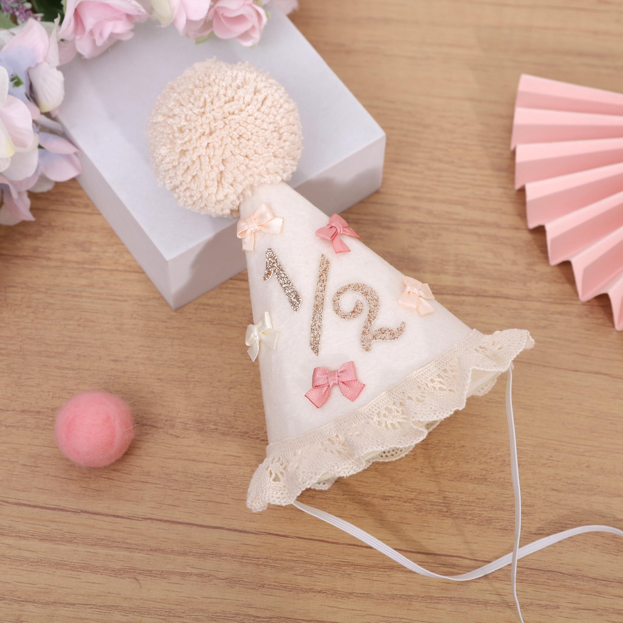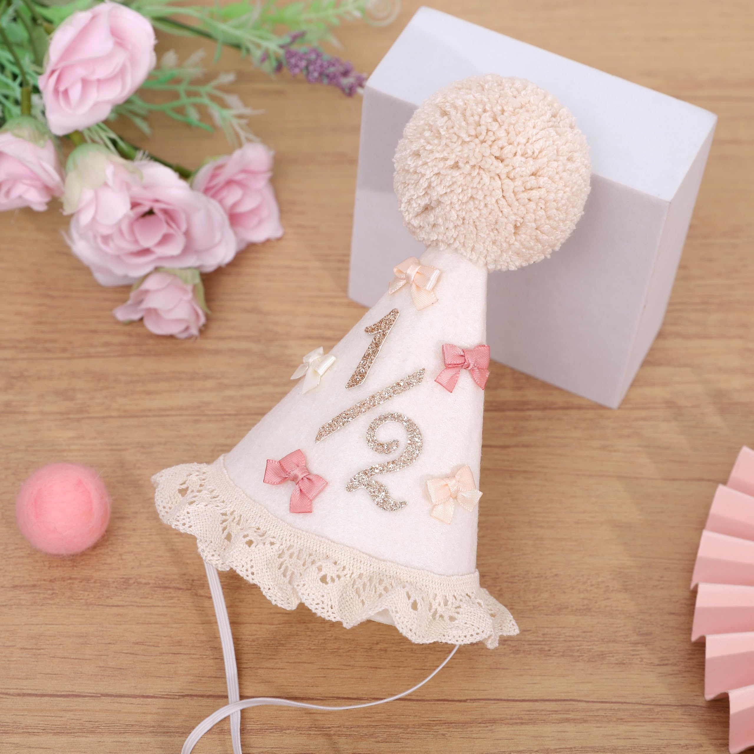 Boho Chic Style with Soft Neutral Tones: Designed with a bohemian flair, the neutral cream base, lace trim, and oversized yarn pom-pom give it a trendy, natural look—ideal for boho-themed half birthday parties or photoshoots.