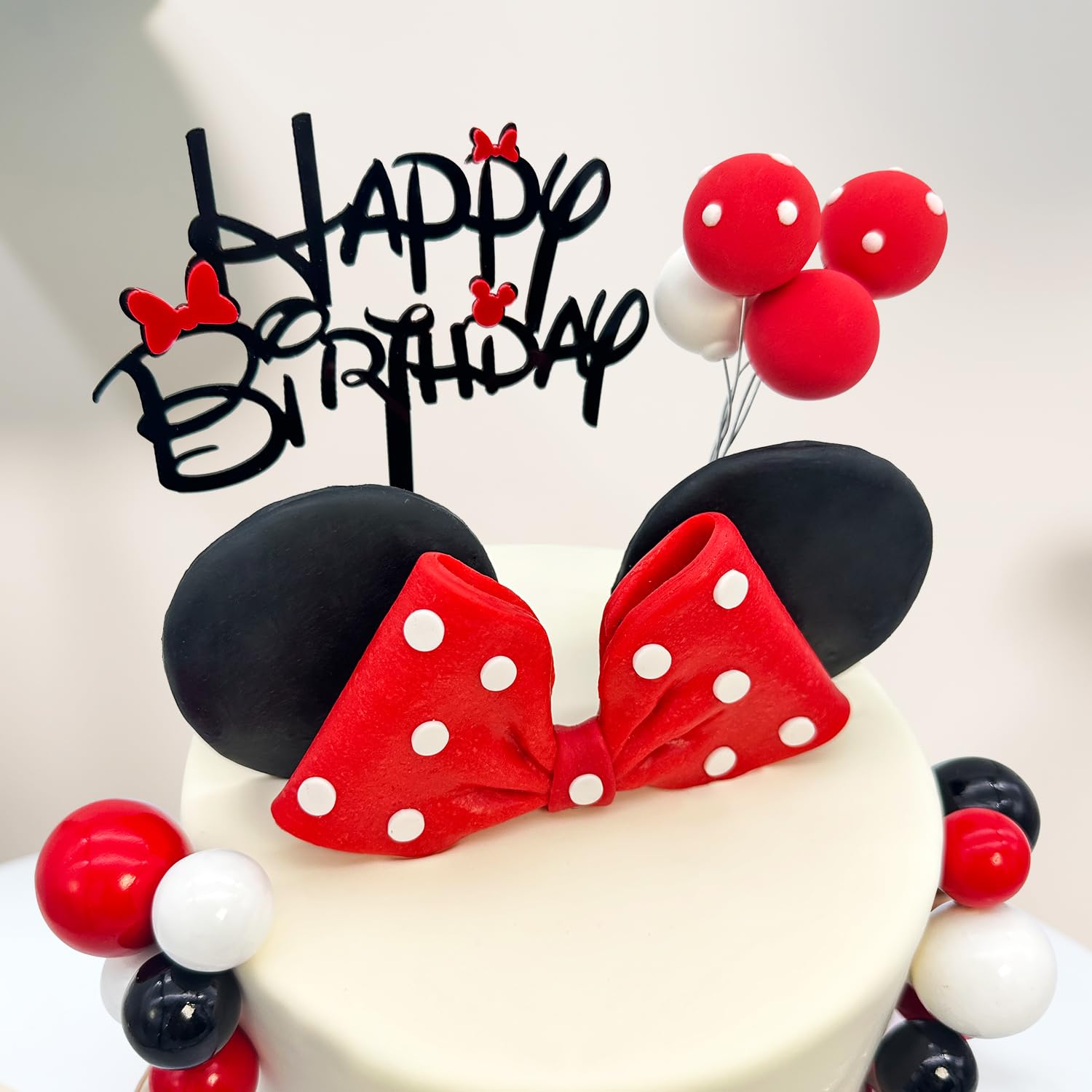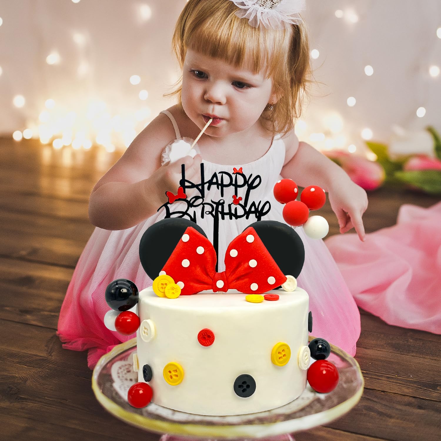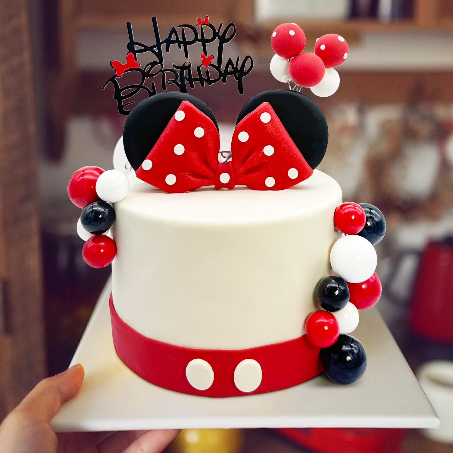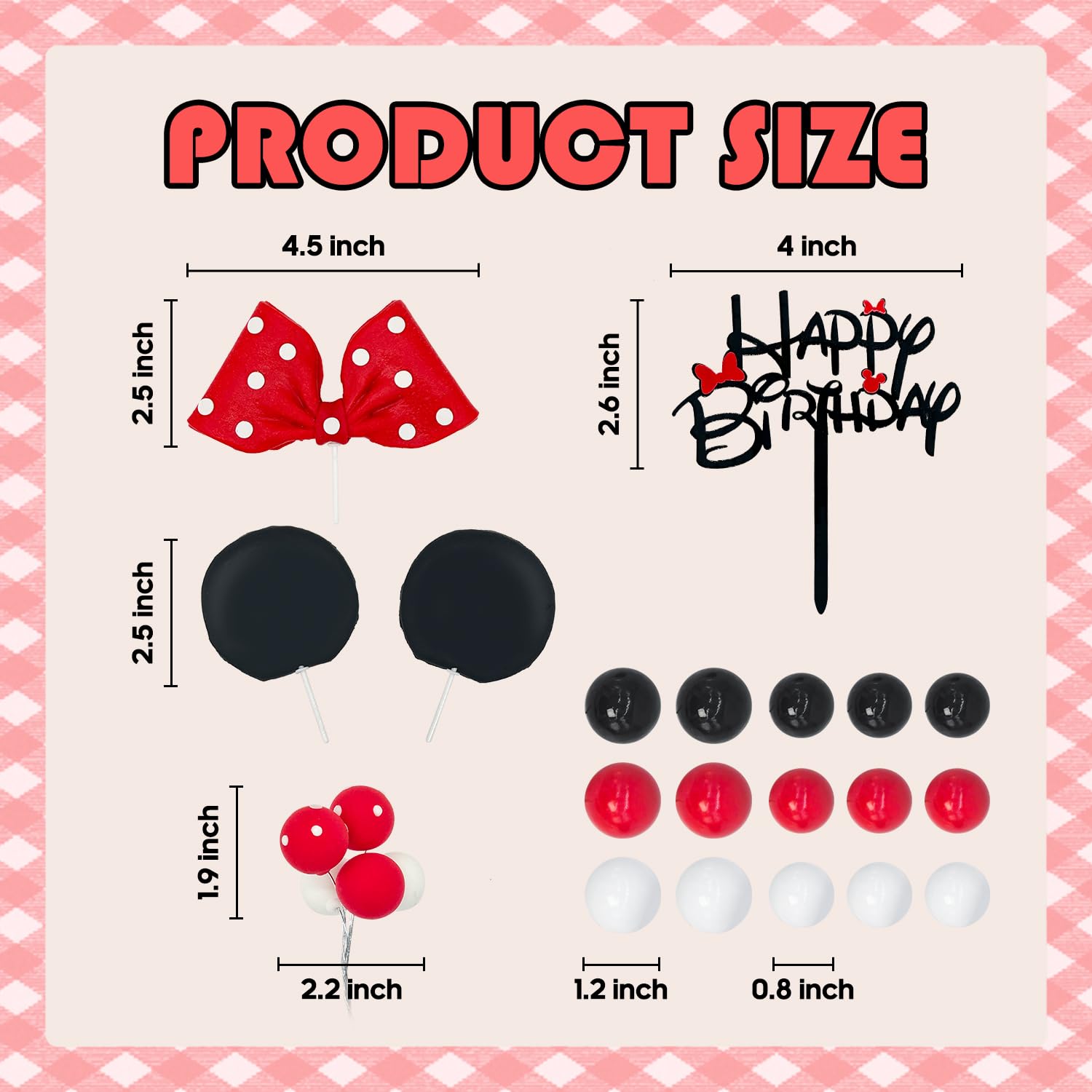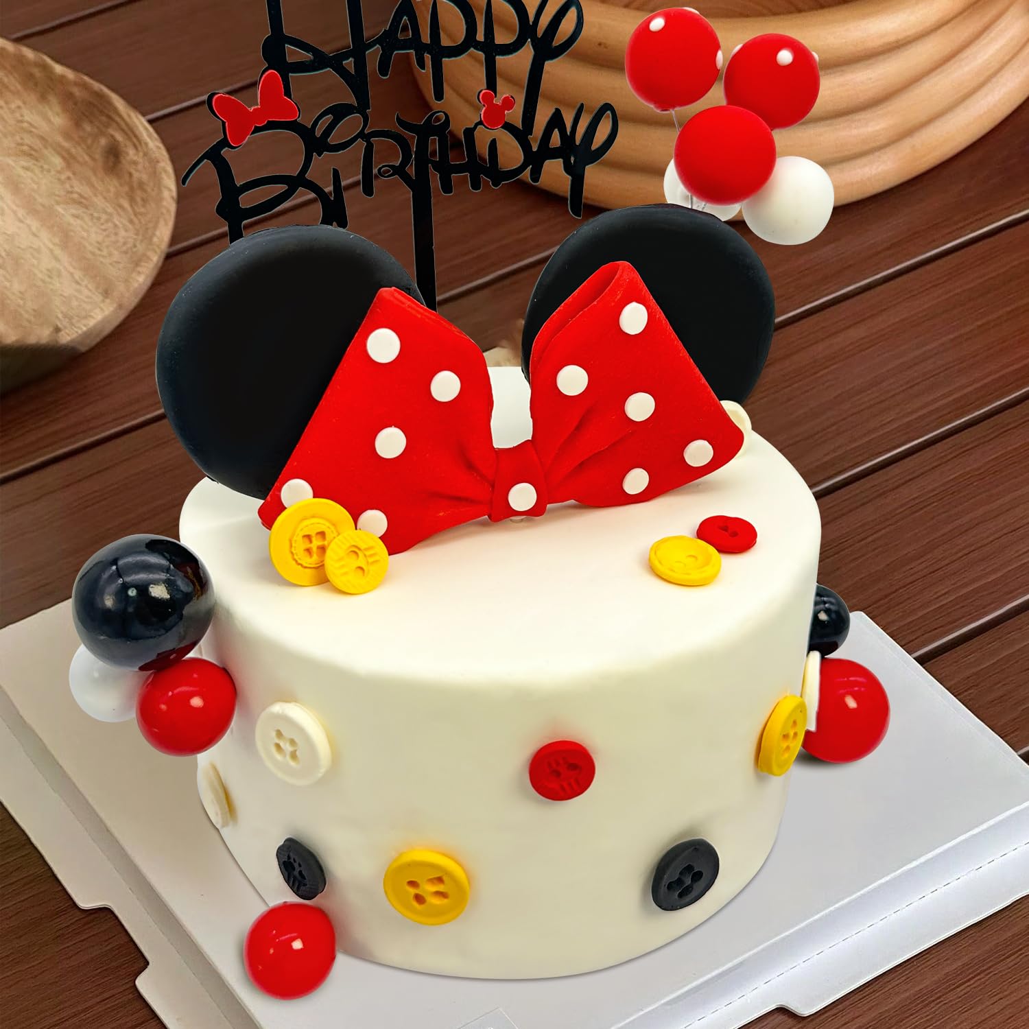 Package Include: You will get 1pc Bows, 2pcs Mouse Ears, 1pc birthday cake topper, 1pc balloon and 15pcs decaration balls.