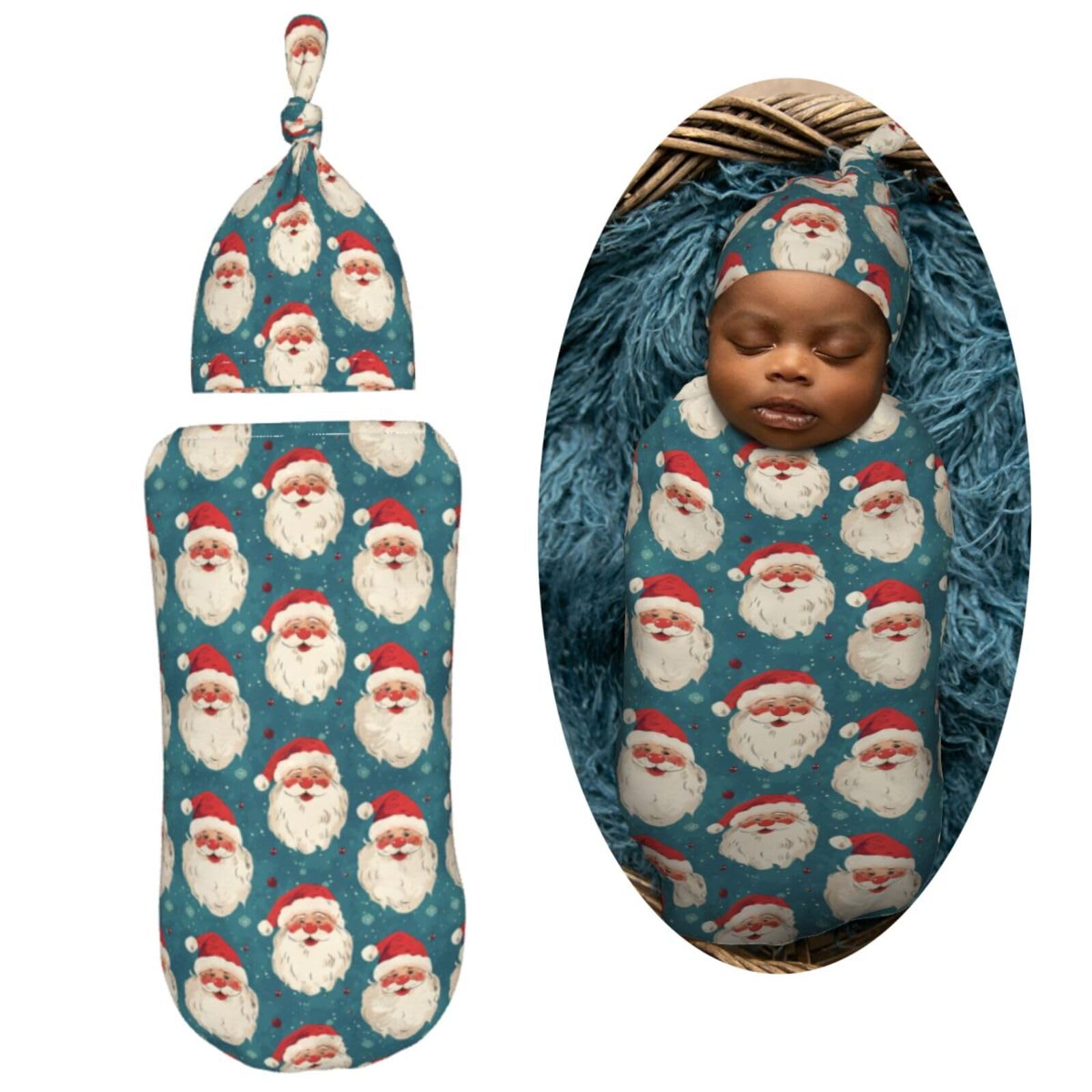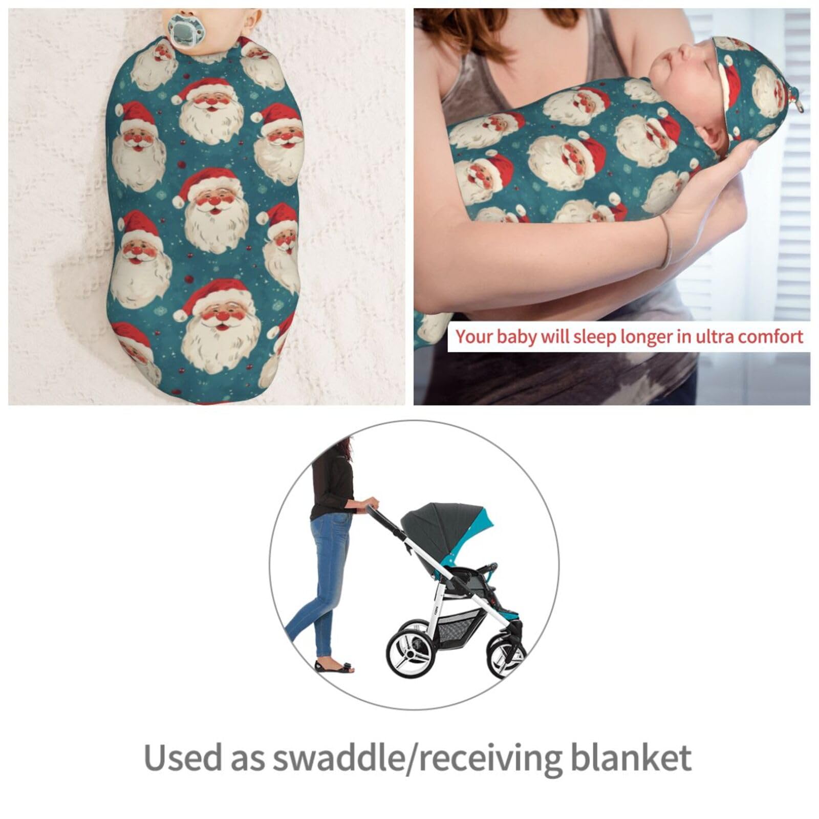 Size: Swaddle Blankets For Baby Boy/Girl Size: 20.8" X 11.4" ; And The Beanie Hat Size: 13"X6.5" . Funny Christmas Santa Claus Swaddle Blankets Is For 0-6 Month Babies.
