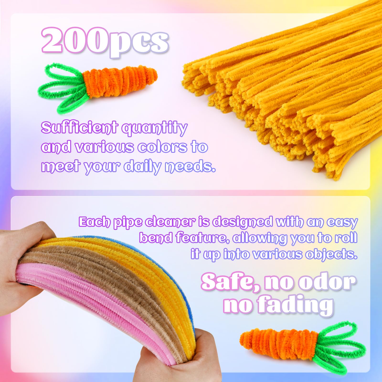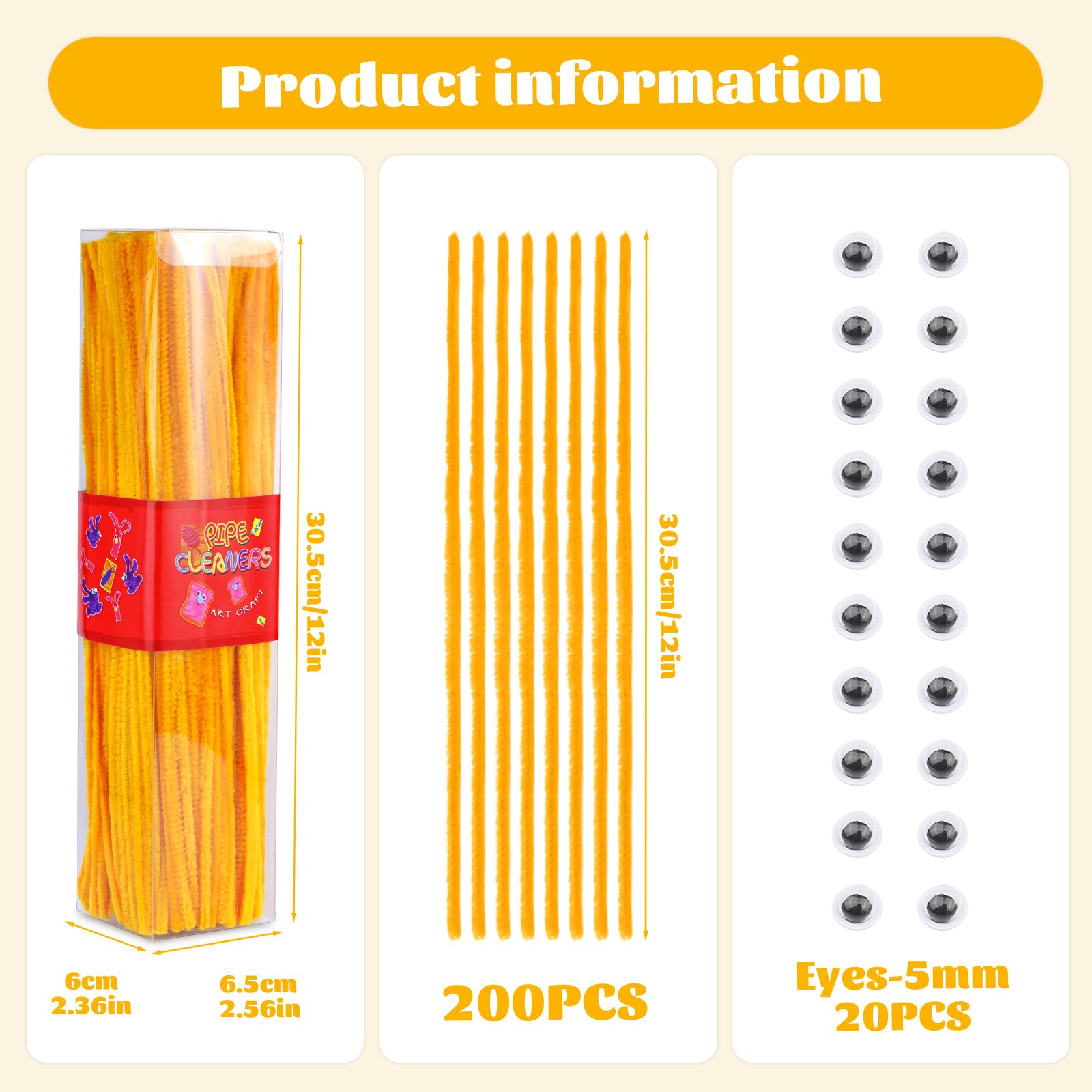 Set Includes: 200 pieces yellow pipe cleaners and 10 pairs of eyes with adhesive backing, placed in a transparent plastic box for easy access and neat storage. With more quantities, feel free to use your creativity to make more pipe cleaner crafts