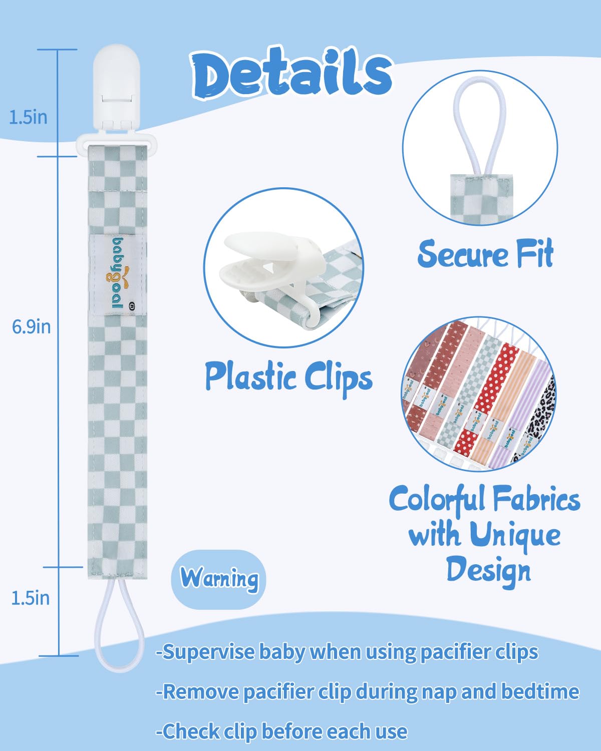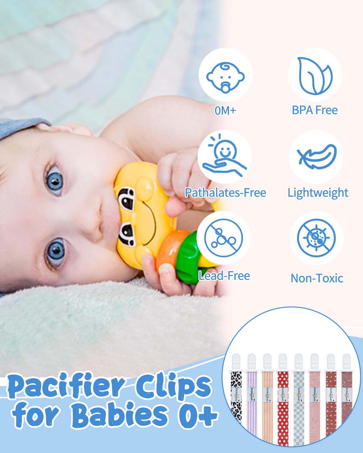 Safety Guaranteed: Our pacifier clips are made of soft, washable polyester fabric with safe plastic teeth, free of harmful chemicals. Designed to keep babies safe without sacrificing style.