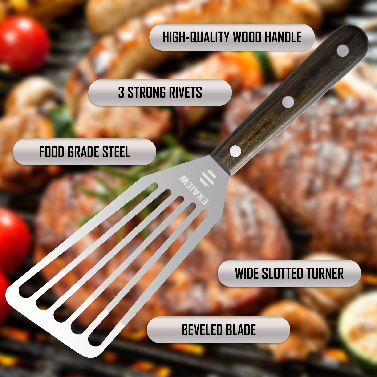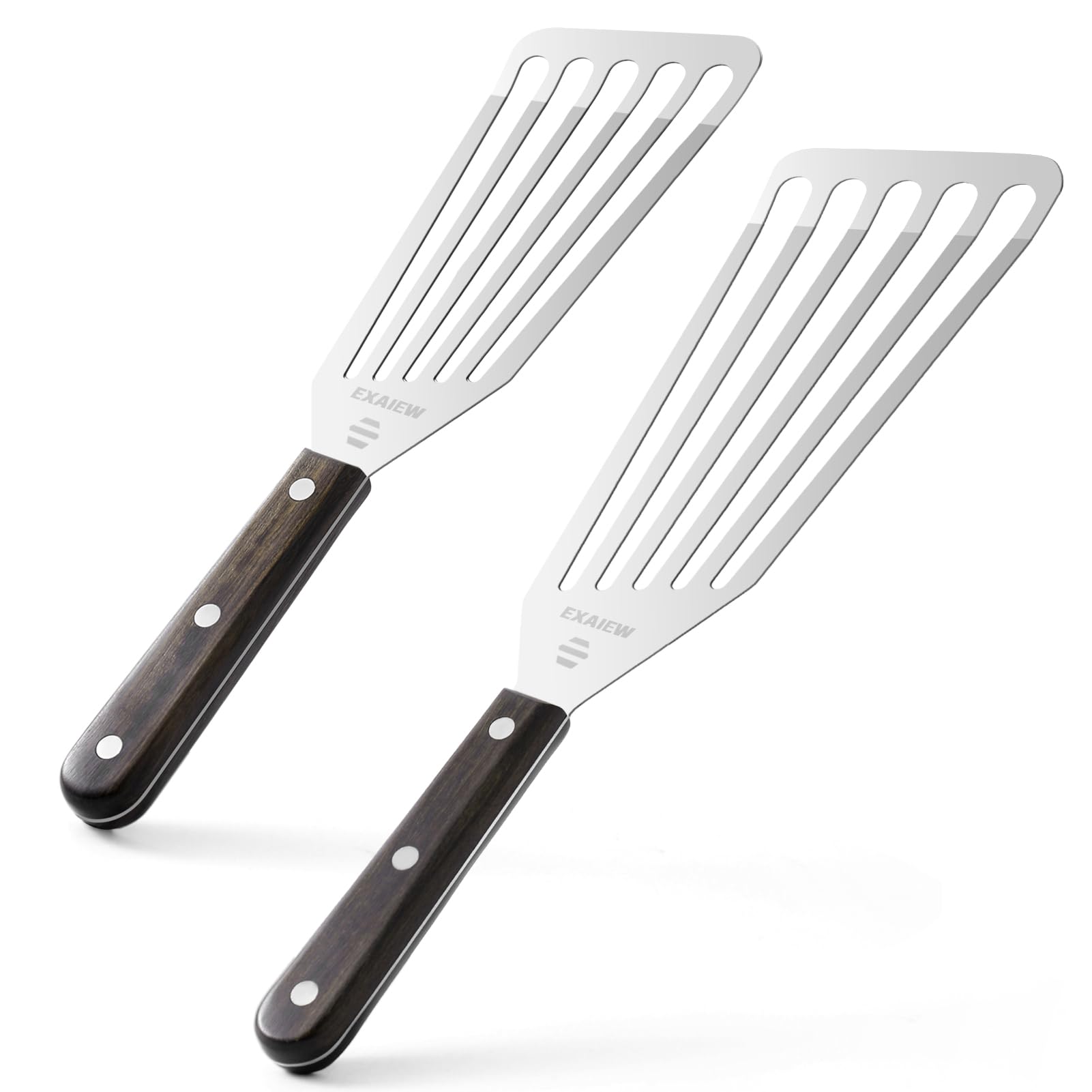 Versatile Metal Spatulas for Kitchen Use β Suitable for most applications that require a flexible spatula: flipping pancakes, grilling burgers, cooking scrambled eggs or omelette and removing items from a roasting pan. Durable stainless steel turner spatula is perfect for flipping burgers on the grill.