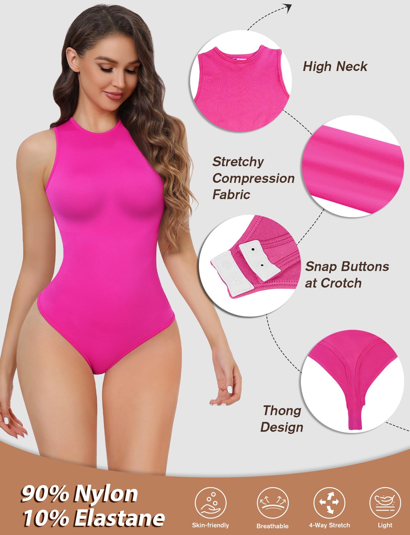 Design: Our bodysuits for women tummy control features high neck and thong cut. The high neckline provides coverage to the chest and back area, showcases a unique and sporty style. Additionally, thong cut helps to minimize visible panty lines, ensuring a smooth and seamless appearance under clothing. To top it all off, convenient snap closure at the crotch allowing for easy bathroom breaks without compromising on style.