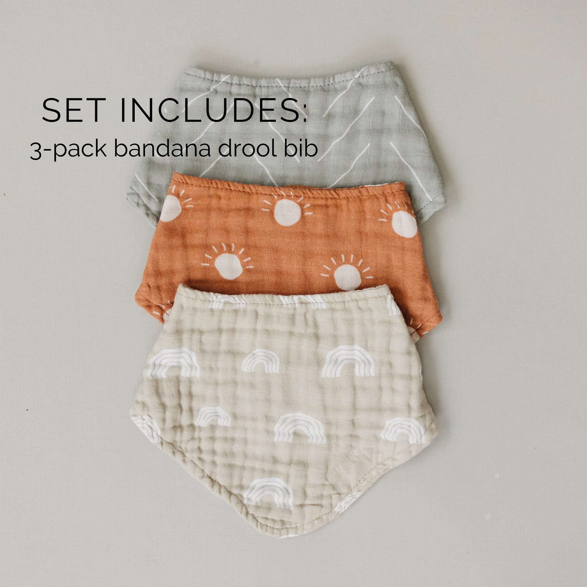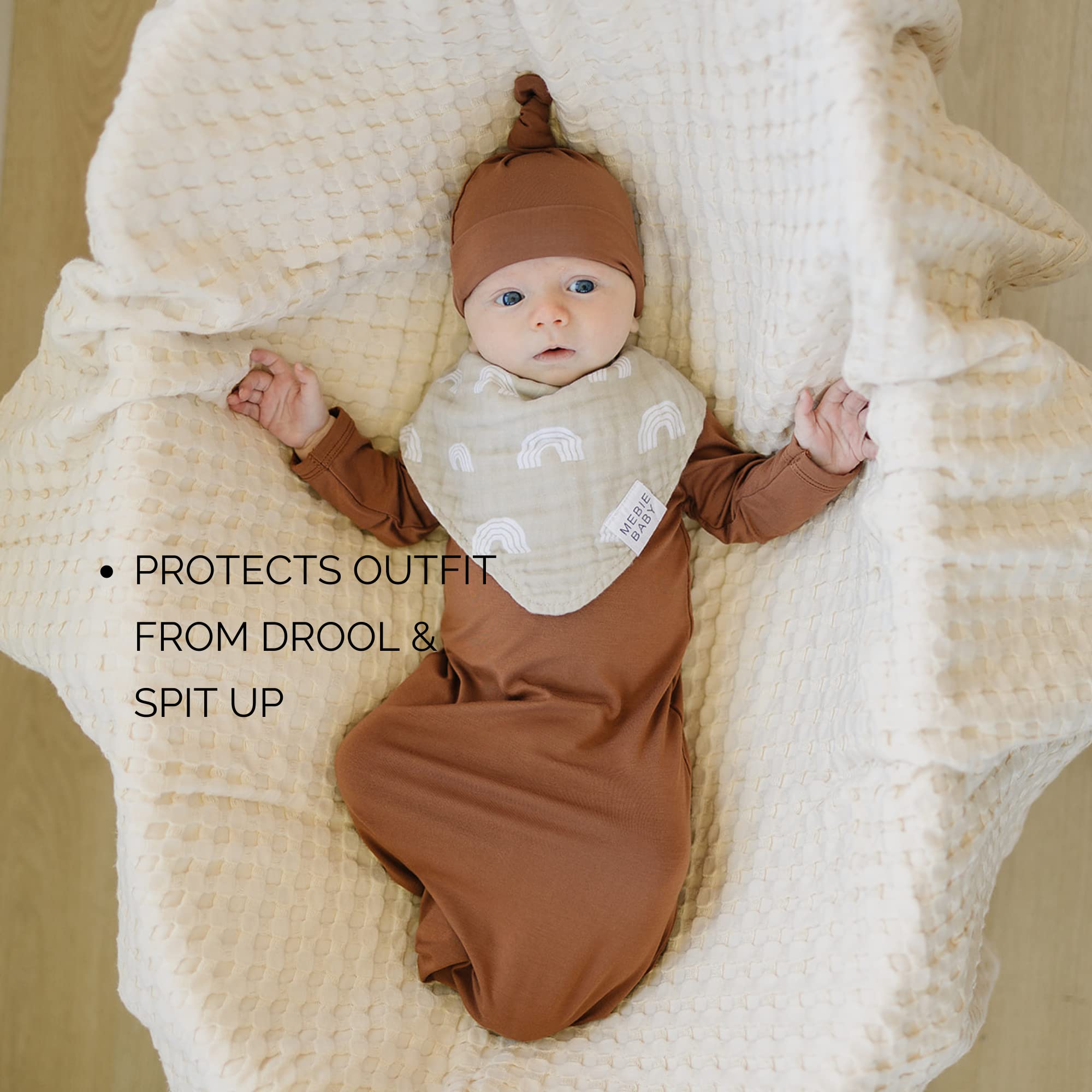 Mebie Baby Muslin Cotton Bib, Neutral 3 Pack, Lightweight Baby Bib Set for Burp, Spit Up, Drool, Stylish Bandana Bibs Baby Accessories, Use All Day, for Boy or Girl, Great for Gift Registry for Baby