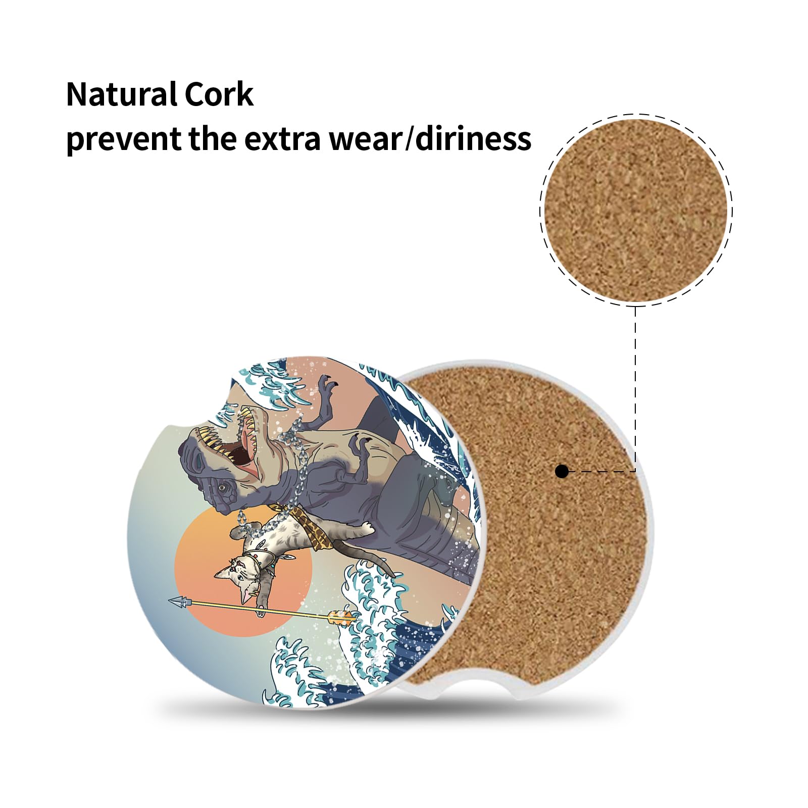 【Ceramic Stone & Non-Scratch Cork Base】Our car coaster adopts special ceramic manufacturing process, can easily absorb the water droplets outside the cup, keep your car cup holder dry and clean. The Cork back of the car coaster has a natural grip surface, even if there is some spill stick, which can be fixed to the car cup seat, will not easily move, and the appropriate isolation layer, to protect the car structure from high or low temperature cup body damage