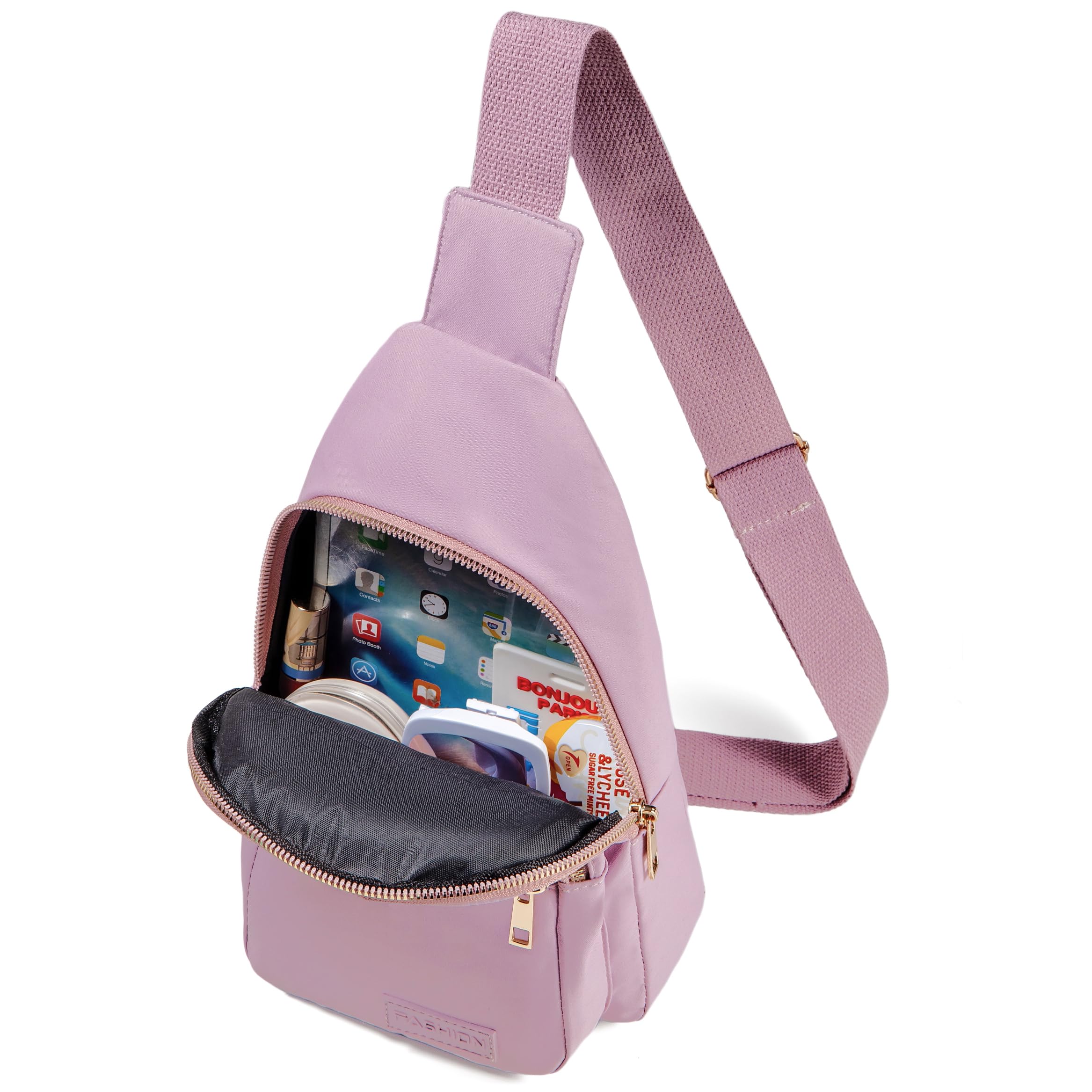Dimension: 11.3" x 6.2" x 3.1" . The Sling bag with multiple compartments and pockets, can hold your phone, wallet, cards, passport, key and any essentials in daily life. Internal zipper pocket is safe for protecting your valuable items inside.