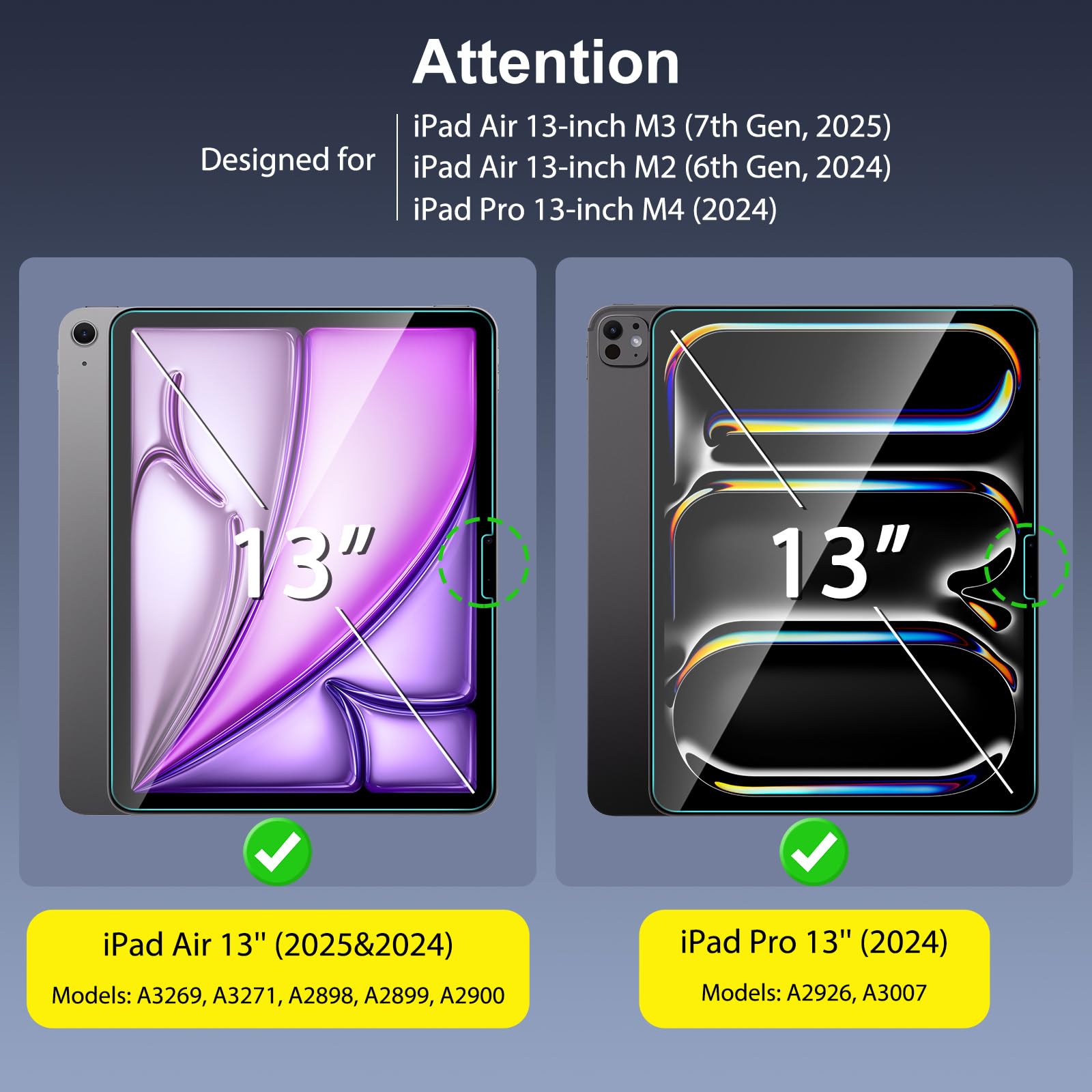 Compatibility: Fit for iPad Air 13 Inch M3 2025 & M2 2024 (7th/6th Generation) & iPad Pro 7th Generation (13 inch M4 2024), Not for iPad air 11 inch/iPad Pro 11 inch
