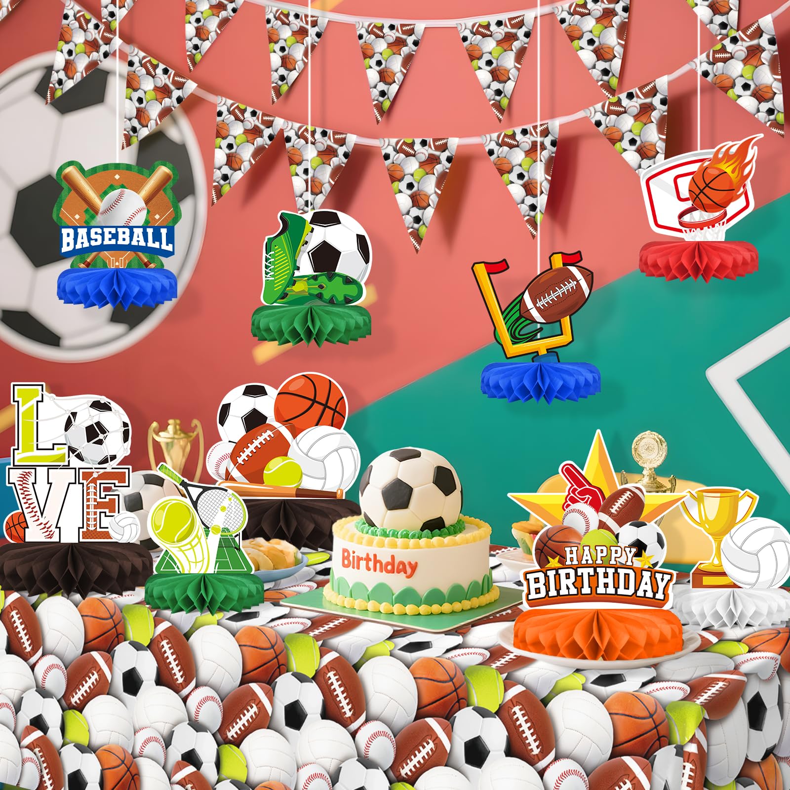 Sports Themed Party Decorations Kit - Honeycomb Centerpiece for Sports Birthday Party Decorations& Favors
