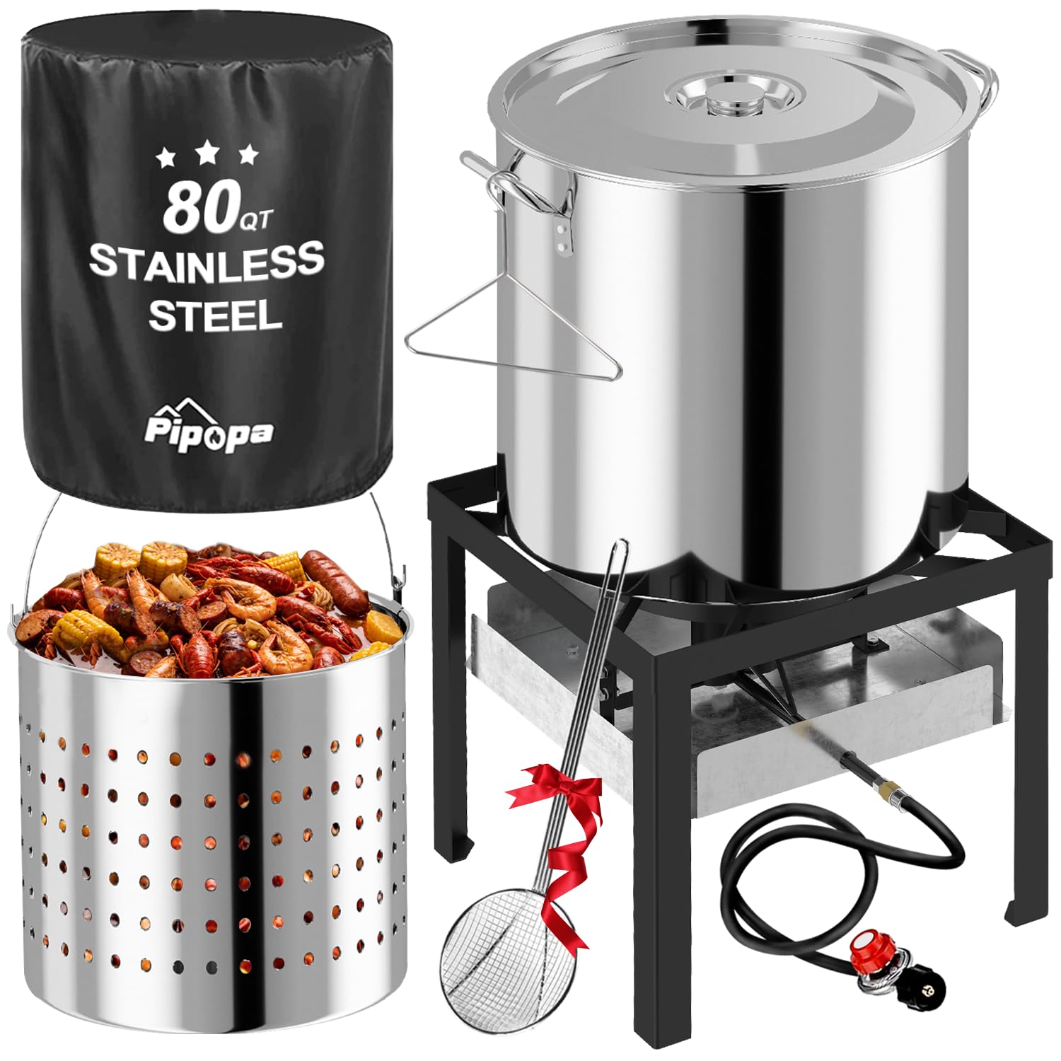 ใ๐ญ๐ด ๐๐ก๐๐ ๐ฆ๐๐๐ ๐ ๐๐ฅใPipopa Seafood Boil Pot Includes a durable stainless steel skimmer makes it easy to lift crawfish, crab, and seafood from large batches. Cook, drain, and serve safely during outdoor seafood boils.
