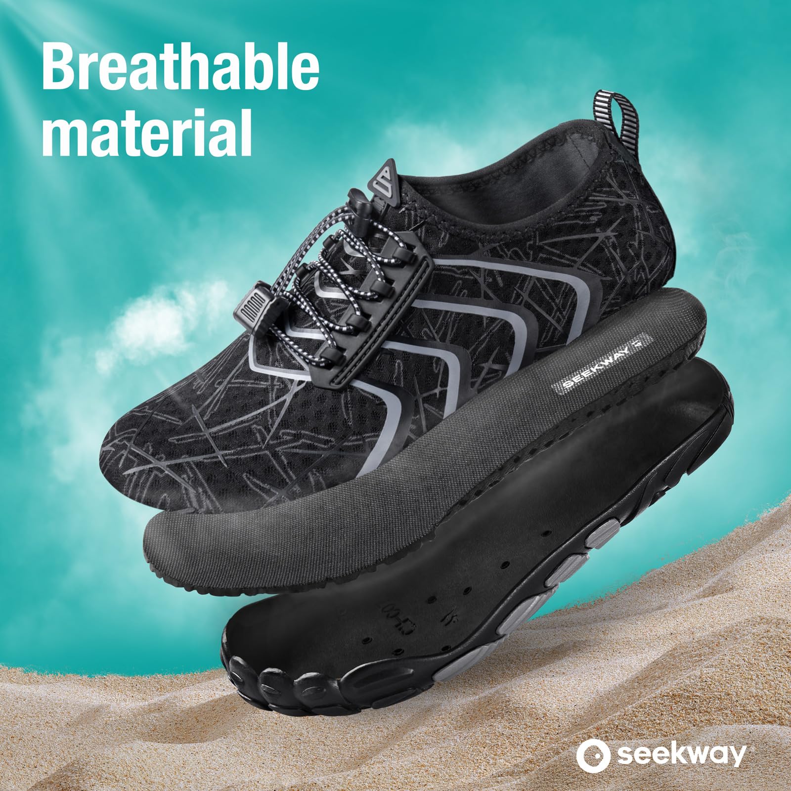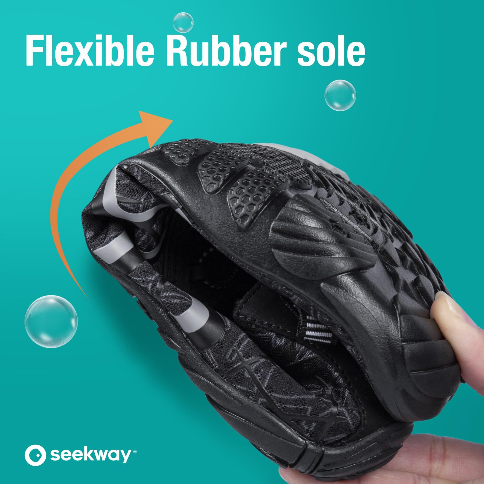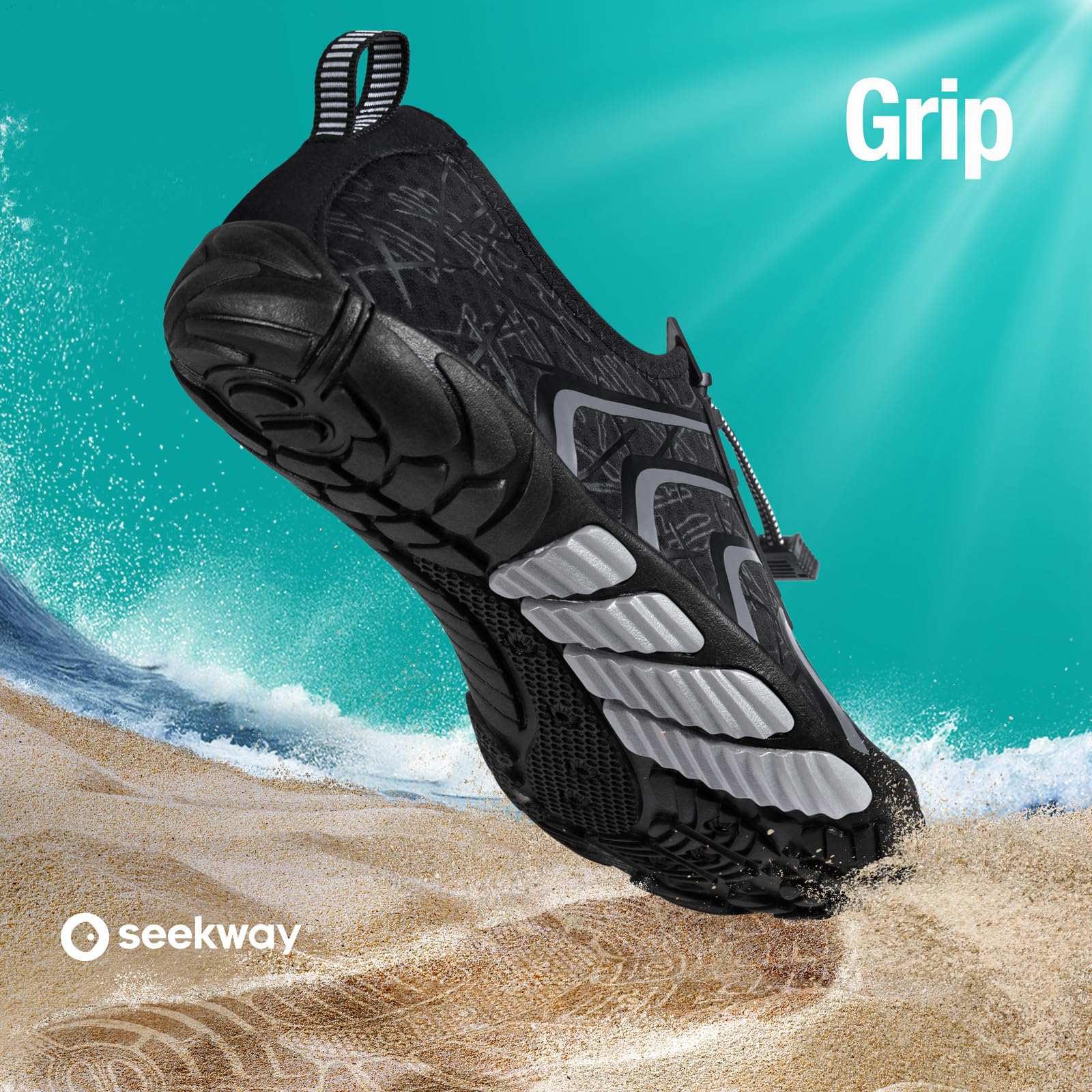 All-round Protection:Thick rubber soles and a toe cap keep your feet completely protected from sharp objects and provide great cushioning. The 3D non-slip treads provide exceptional grip even in slippery conditions. This makes it a great choice for outdoor sports.