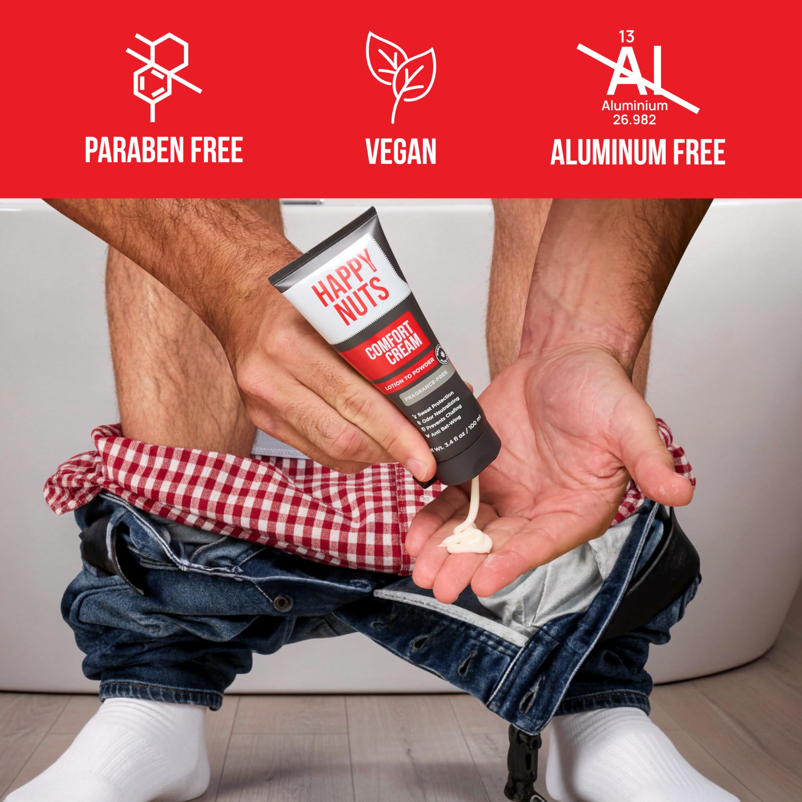 LOTION-TO-POWDER TECHNOLOGY - Comfort Cream applies as a lotion and dries to a powder, absorbing sweat and creating an anti-friction layer for long-lasting odor and sweat protection, keeping you fresh and confident throughout the day.