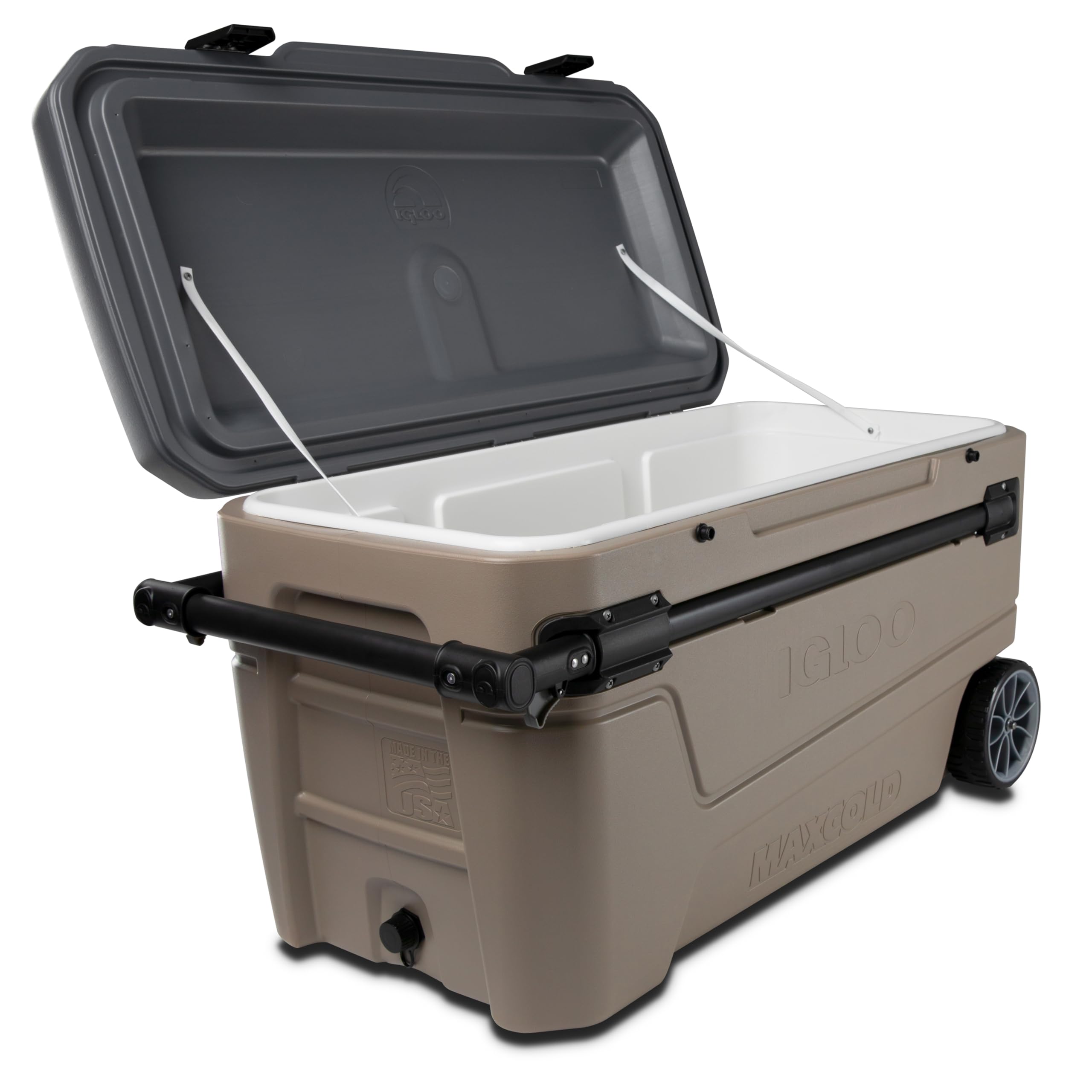 another igloo industry first: horizontal telescoping handle requires 50% less lifting effort
