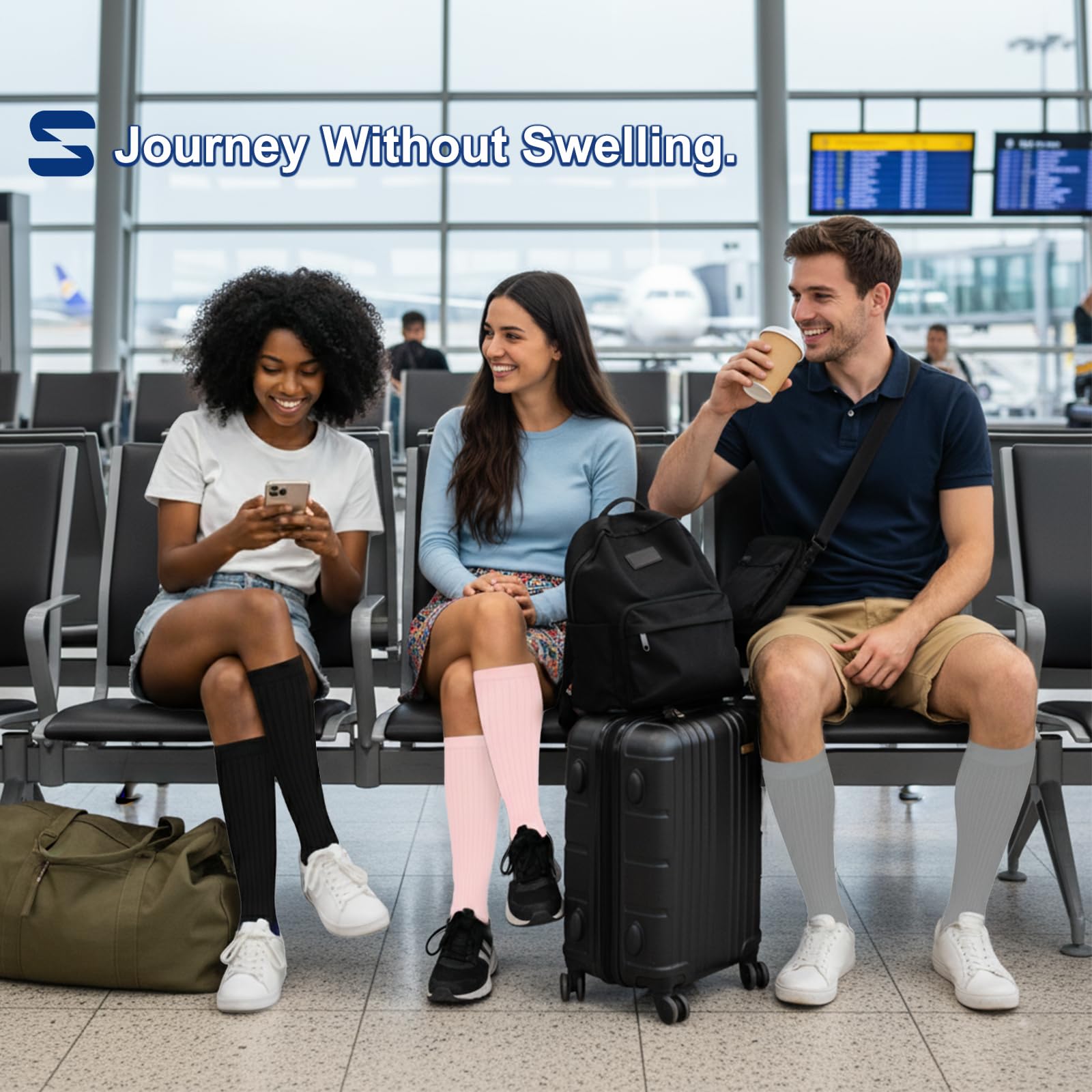 Comfortable Design - Sooverki graduated compression socks for women and men circulation provide 15-20 mmHg of gradient compression, which are ergonomically designed. Prevention and relief of minor varicose veins, relief of tired aching legs, relief of minor swelling of feet and legs. The inner design of the socks is very soft and friendly to the toes. The material is breathable and comfortable, which can keep your feet dry.