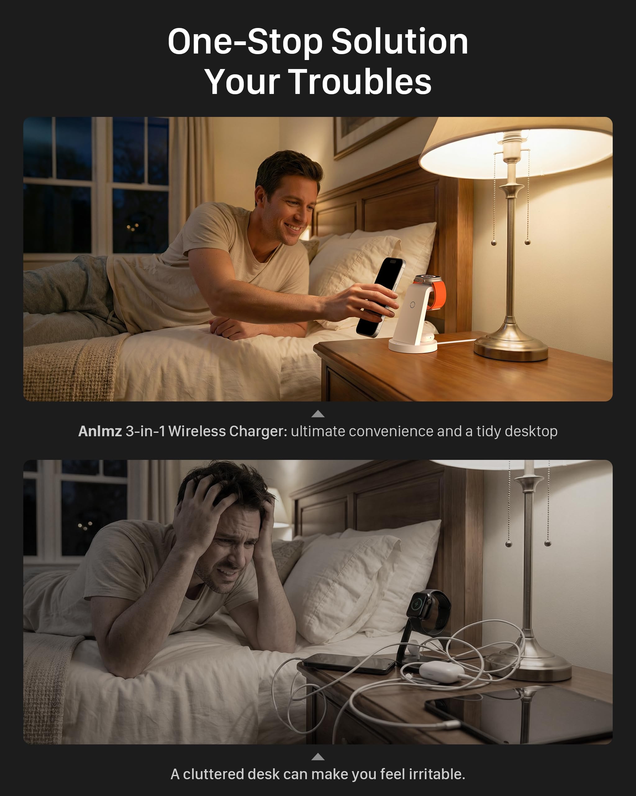 Charge 3 Devices at Once:Charge your iPhone, Apple Watch, and AirPods at the same time with one compact 3-in-1 wireless charging station—keeps your nightstand or desk clean with a single USB-C cable setup.