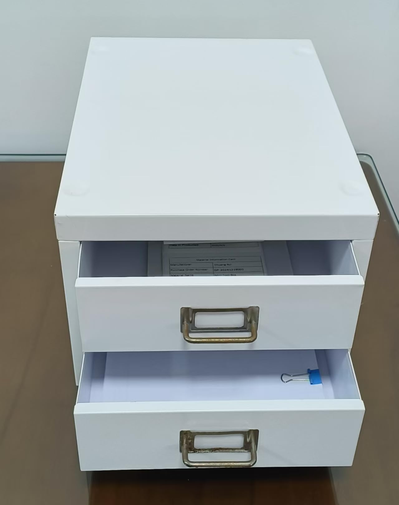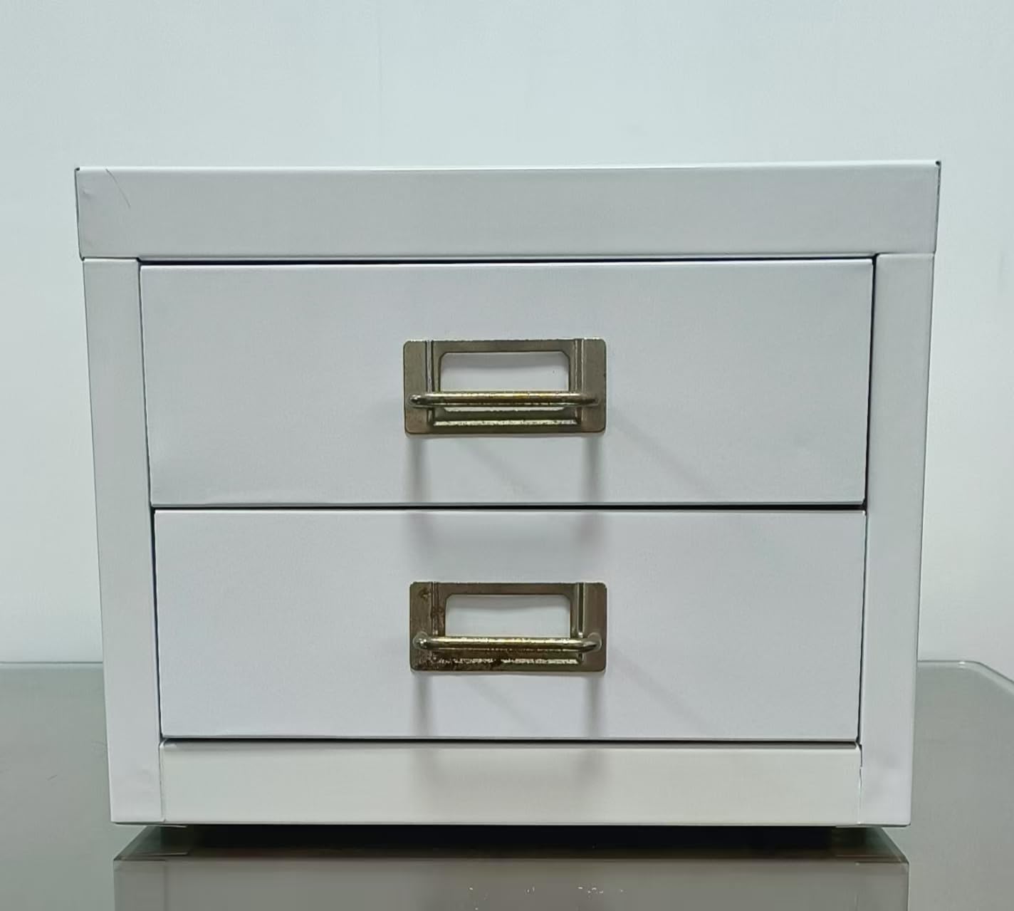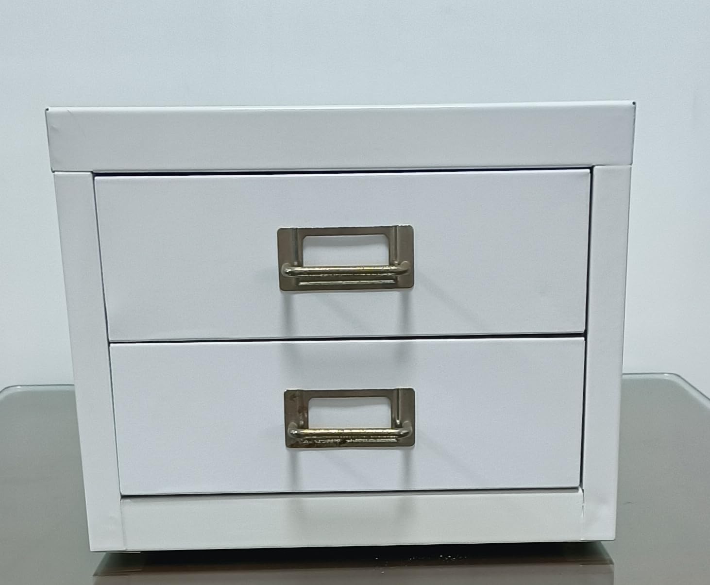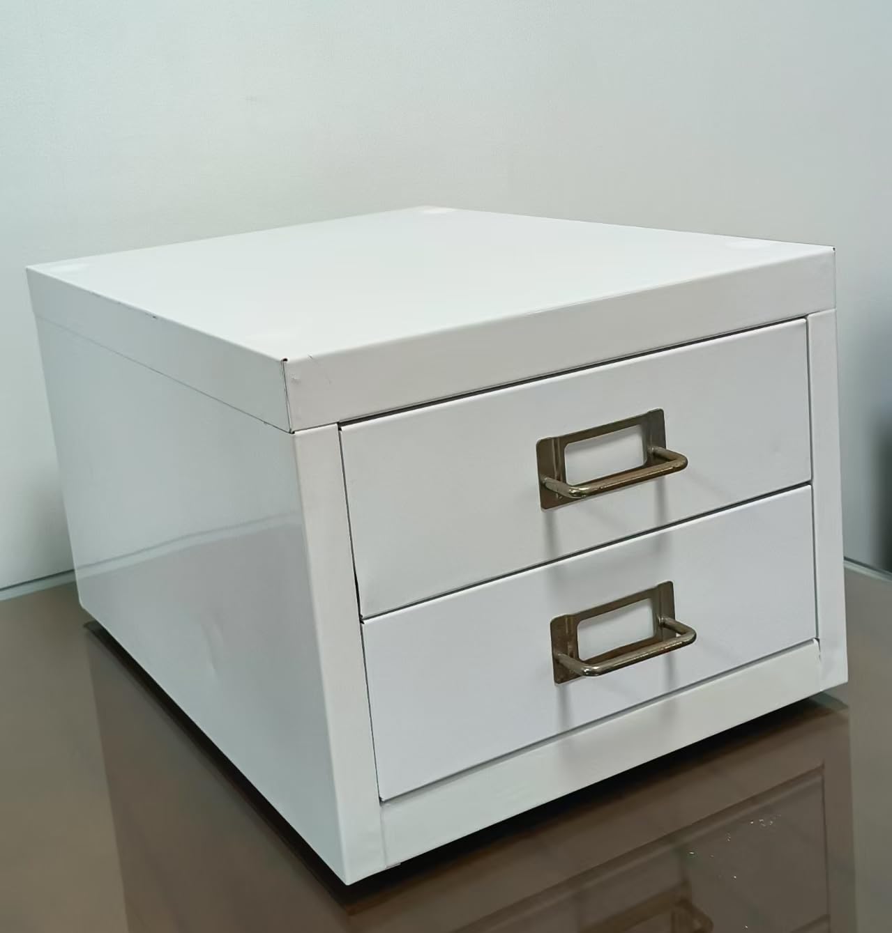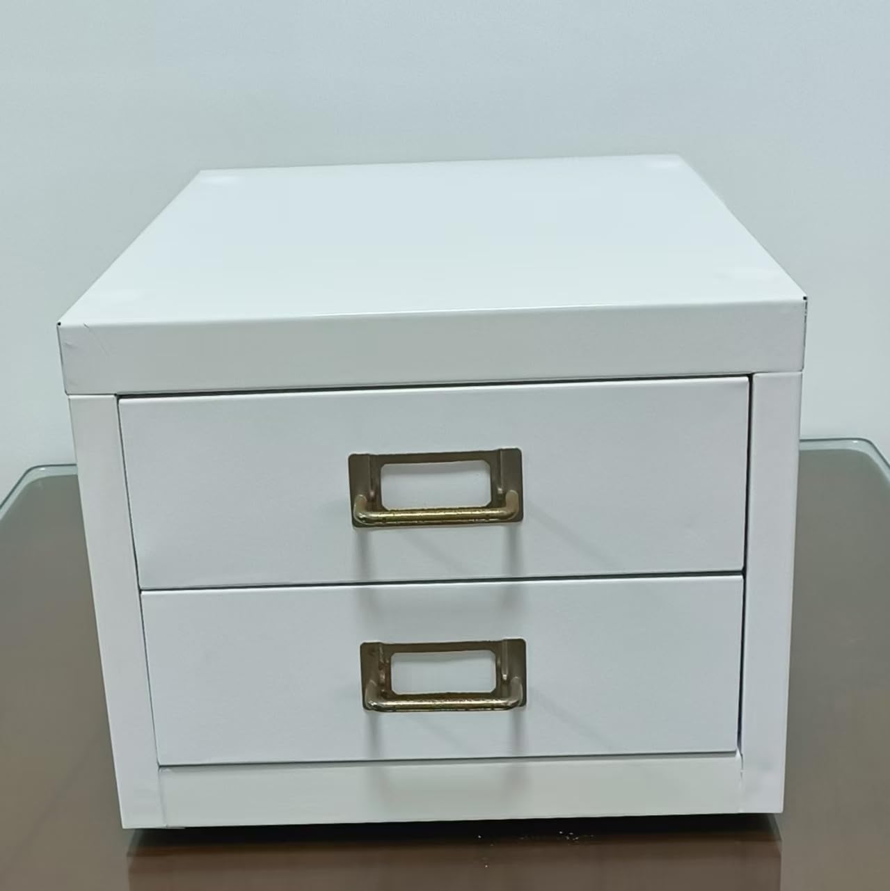 MINI 2 Drawer Metal File Cabinet, White, for Home Office, Office Desk File Organizer, also use for Photography, Medicine, Miscellaneous, Makeup, Tools, Jewelry, Files & Documents, Thread & Sewing, Art & Crafts etc. 2 Tier Mini file cabinet Dimension: Width 11inch * Depth 15inch * Height 8.8inch.