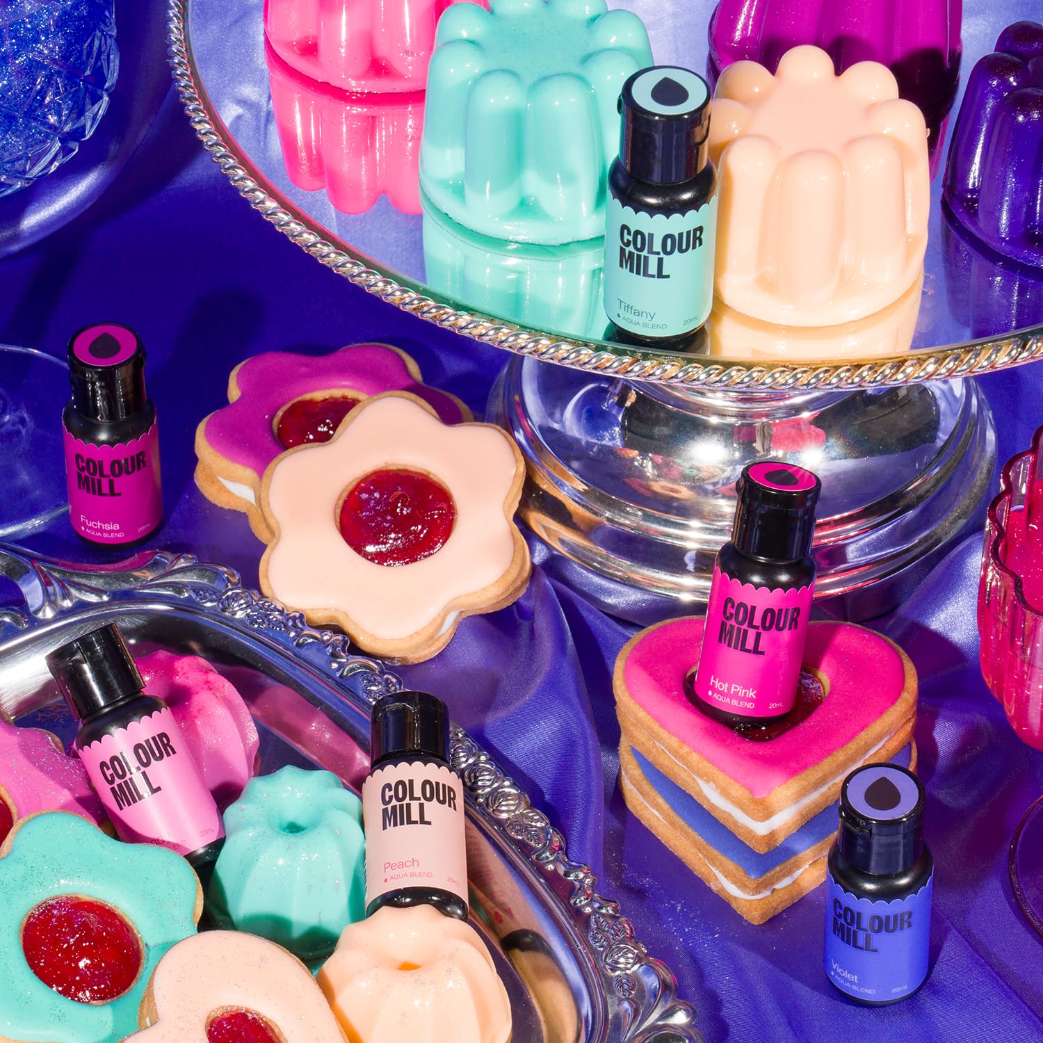 Colour Mill Fairytale Pack of Aqua Blends This 6 pack is for making bakes so magical & spellbinding, not even true love's first kiss can break the enchantment. With oil, royal icing can spoil and macaroons can crack, so Colour Mill’s unique Aqua Blend pigments are your best friend for turning oil-and-fat-incompatible products into bold and brilliant bakes. Using more drops will increase the intensity of color. Using less will create softer hues. Build the color slowly as you mix your batter to achieve your desired hue. Before getting started, use the bottle lid to pop a hole in the seal and give the bottle a good shake. Colour Mill’s pigments pack a punch so take it slow when coloring, starting with just a few drops and mixing as you go. Tip: If you have time and for the best results, let your mixture sit overnight. Products, facility & packing lines are free of the 14 common allergens celery, cereals containing gluten, crustaceans, eggs, fish, lupin, milk, mollusks, mustard, nuts, peanuts, sesame seeds, sulphur dioxide and soya. Aqua Blend pigments cannot be used with oil- and fat-dispersible ingredients. Store in a cool dry place away from sunlight.