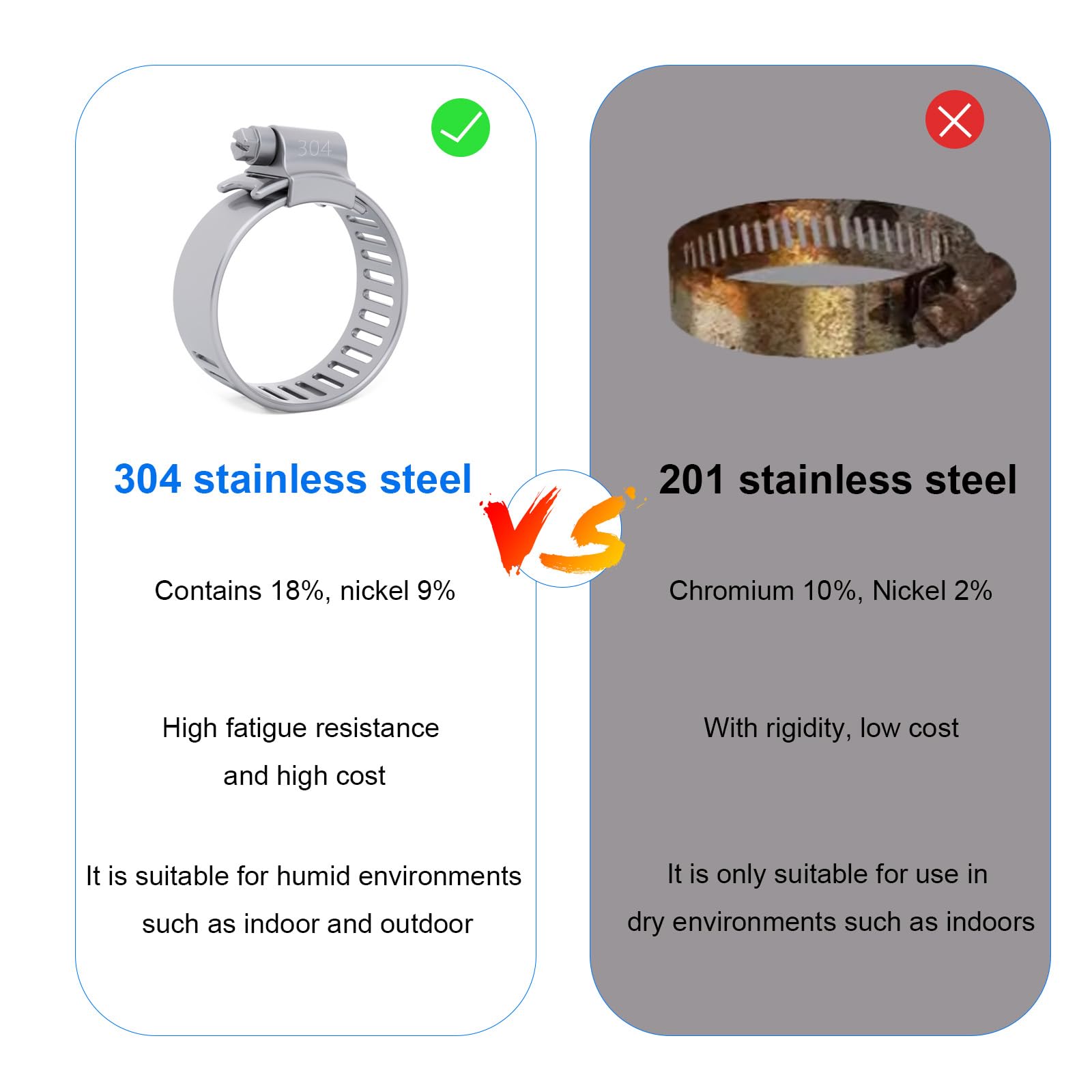 Superb Material: Our adjustable hose clips are made of outstanding stainless steel material, which is high hardness, durable, not easy to rust, and non-corrosion characteristics. Our pipe clips with solid construction and exquisite craft, rust-free. It will always look new after a long time of use.