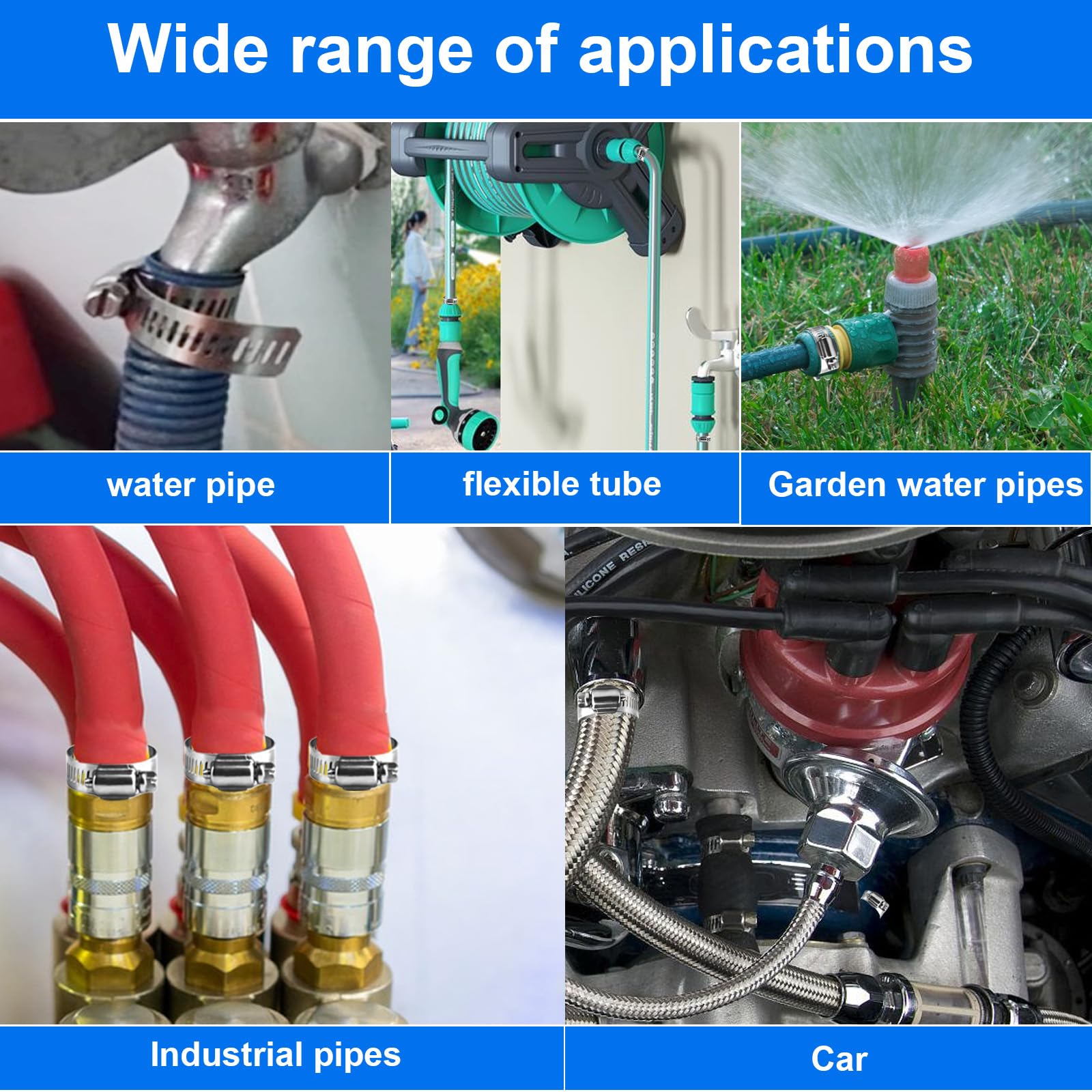 Wide Applications: The package includes 62 pcs adjustable hose clamps, and a storage box. Apply to securing hoses, pipe, cable, tube, fuel lines in-home applications, automotive, industrial, boat or marine, etc, meet your different needs.