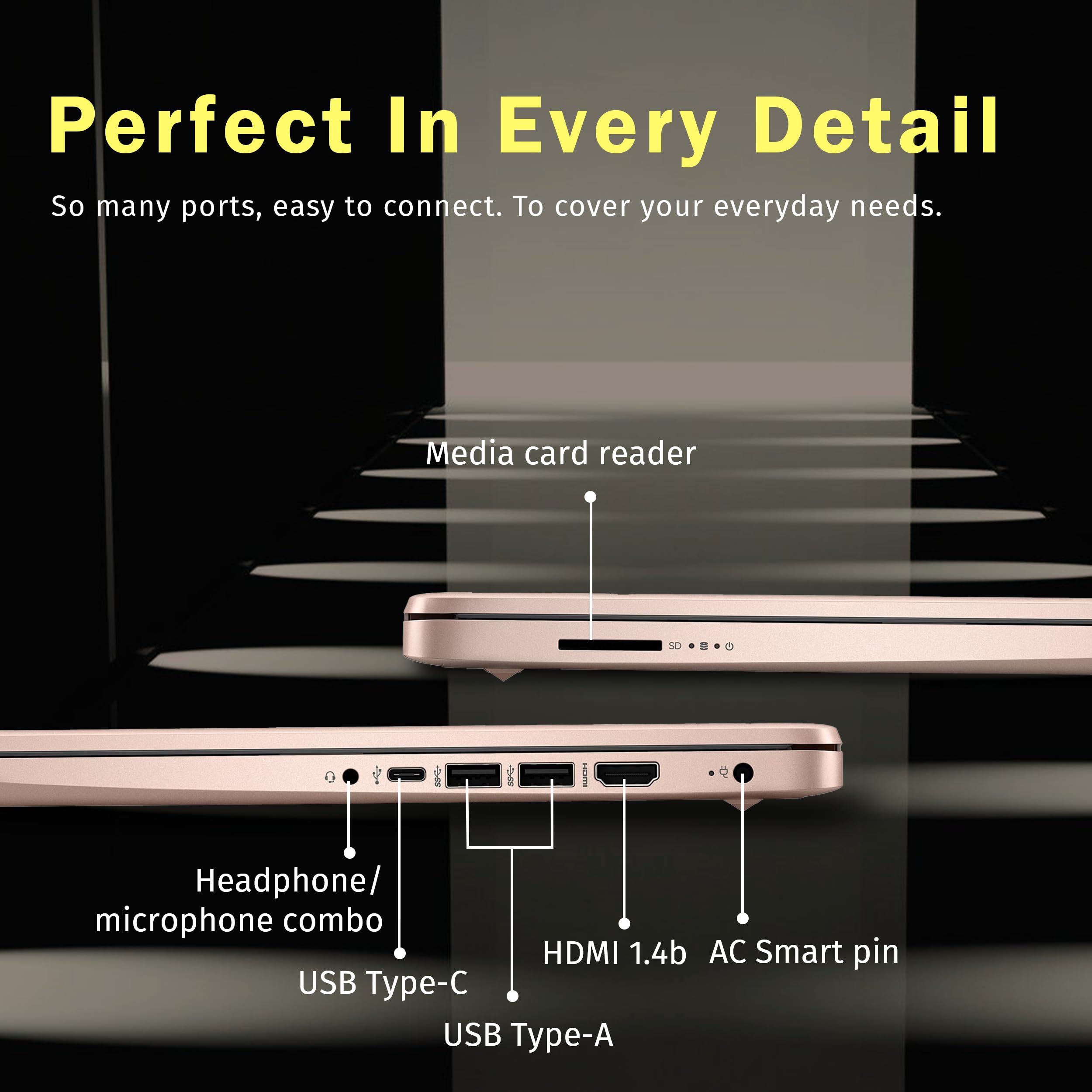 【Windows 11 S】Unlock endless possibilities with a user-friendly operating system, tailored to your needs.【Dimensions & Weight】12.76 x 8.86 x 0.71 inches, 3.24 lbs.【Ports】1x USB Type-C, 2x USB Type-A, 1x Headphone/microphone combo, 1x Media card reader, 1x HDMI 1.4b, 1x AC Smart pin. Wi-Fi 6, Bluetooth, Webcam.【Bonus Docking Station Set】1x 7-in-1 Docking Station w/ 128GB SSD, 1x 32GB MicroSD Card w/ Adapter, 1x Type-C Data Cable, 1x 3-in-1 Charging Cable, 1x Suede Cleaning Cloth.