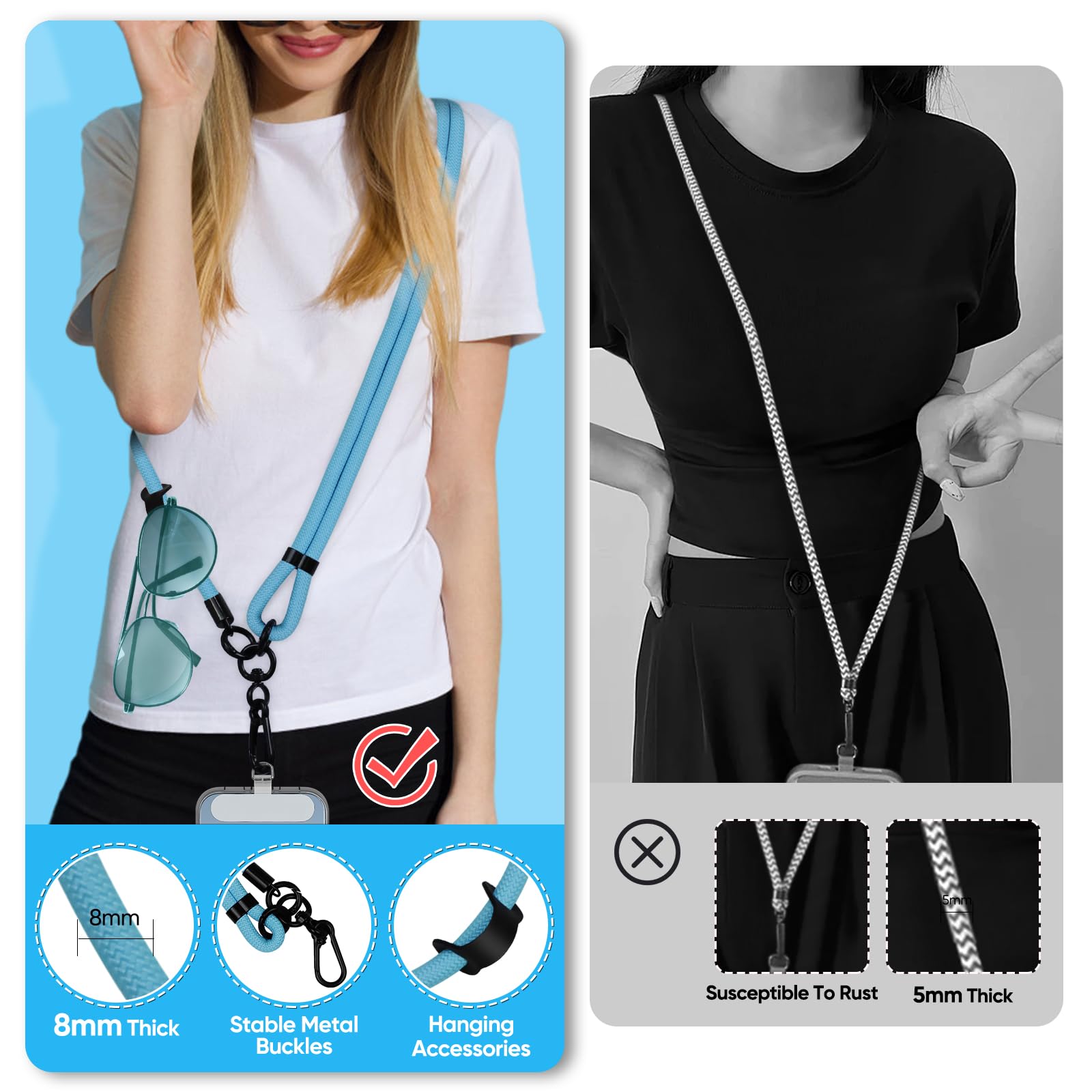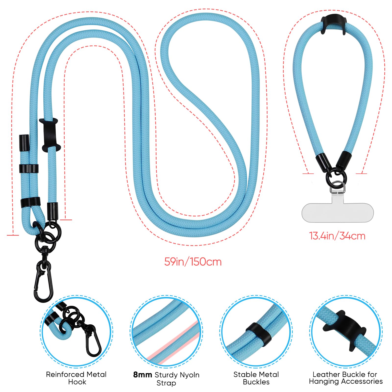 1.For Adults and Youth:With a 59 inch length, this phone crossbody strap is suitable for heights ranging from 55 to 75 inches, catering to both elder,adults and youths;women and men. The length can be easily adjusted by stable metal buckles. The phone leash lanyard is specifically designed to anti-lost and accidental falls
