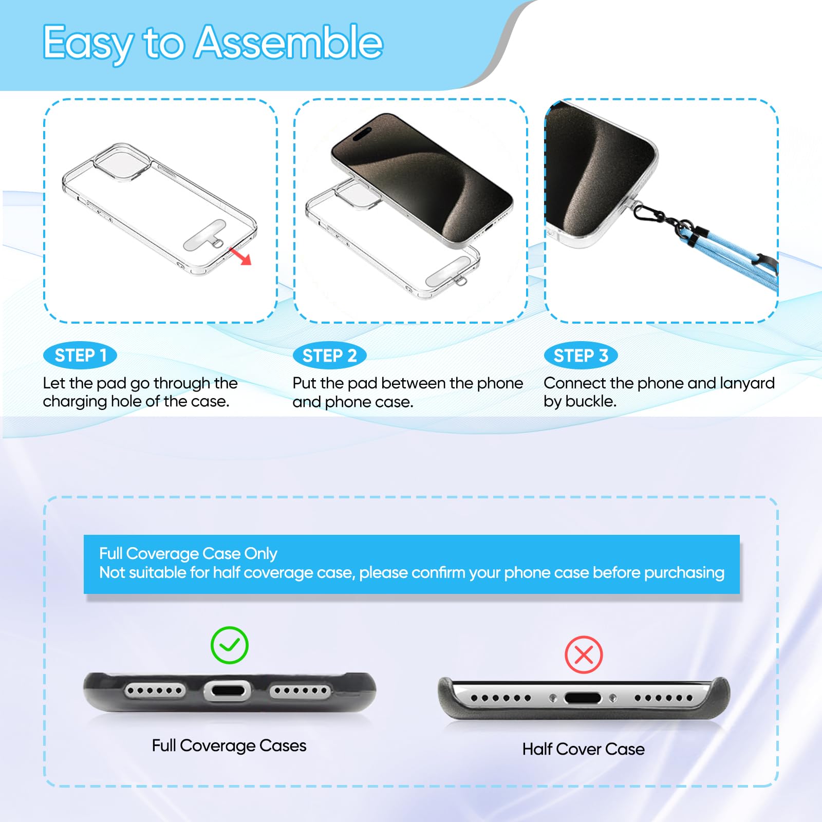 5.What You Get-- Each pack includes 2*durable stickness pads, 1* wristlet strap, and 1*adjustable crossbody lanyard