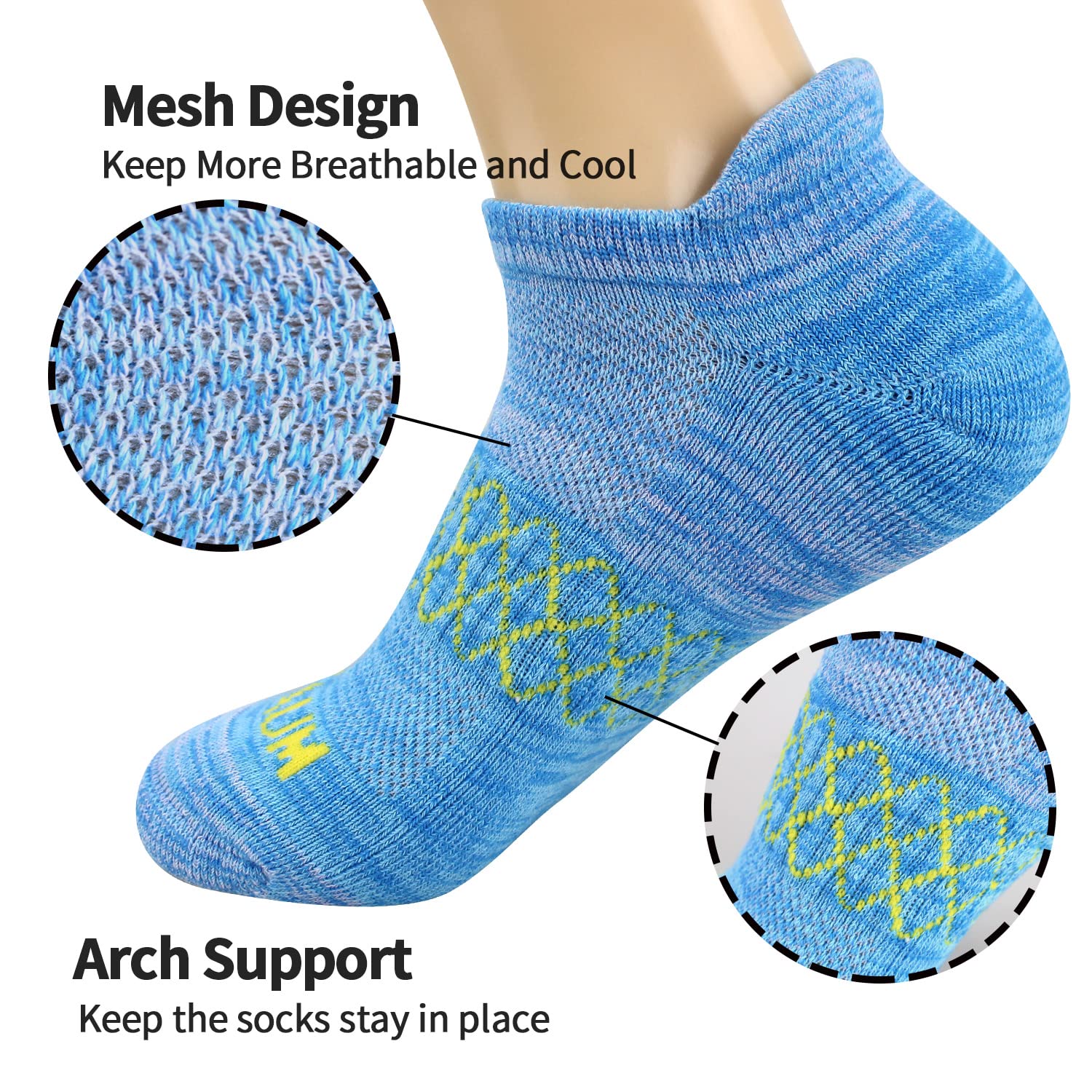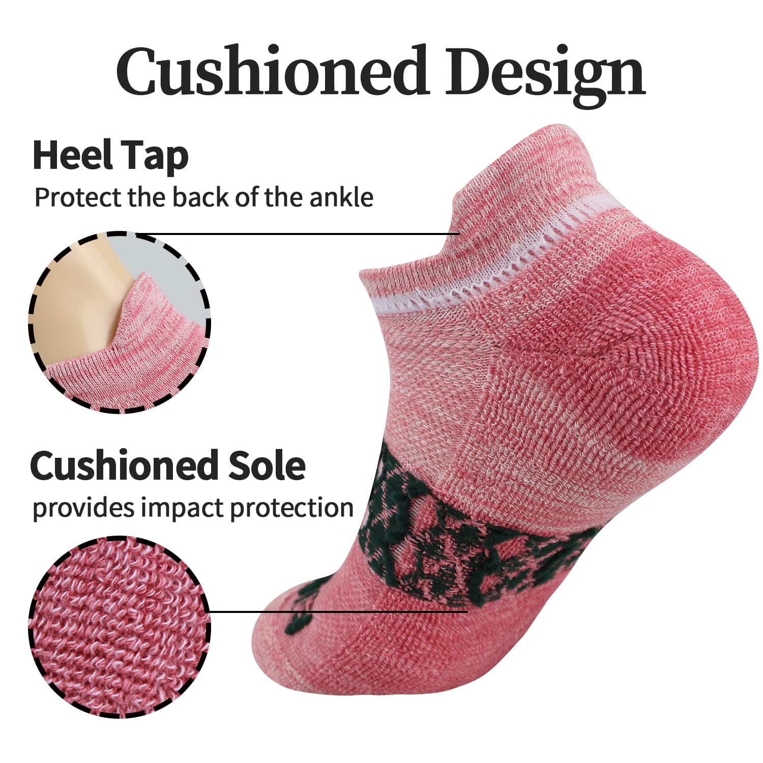 [Heel Tab]----Women' s ankle socks with heel pull tab and elastic cuff greatly help for blisters resistance and preventing chafing. Easy for pull on and off. Size Options: Small: US Women's Shoe Size:5-8, Medium: US Women's Shoe Size 8-10, Large: US Women's Shoe Size 11-13