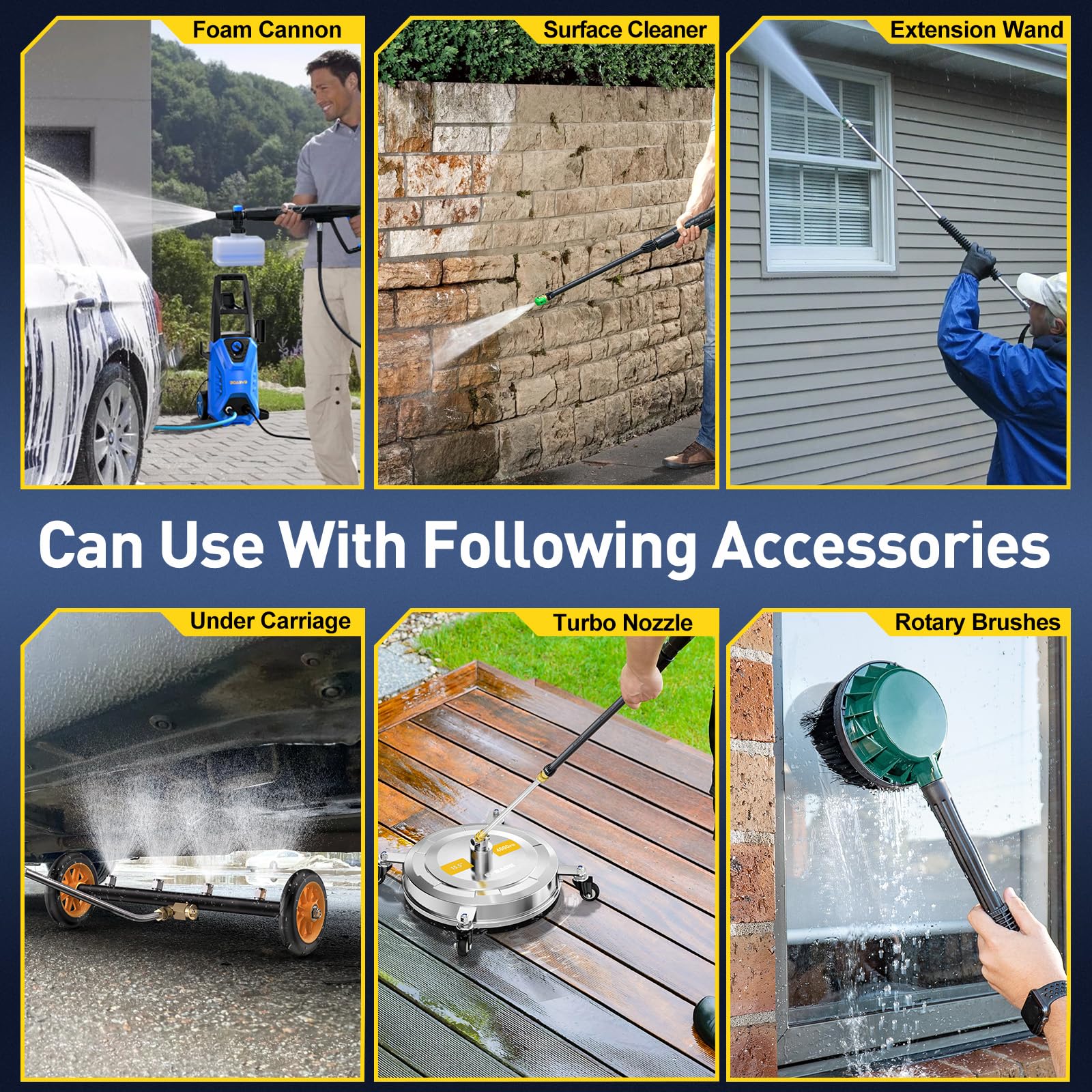 【15.5'' PRESSURE WASHER ACCESSORY 】- EVEAGE “EchoClean” surface cleaner for pressure washer gives a commercial grade cleaning area of 15.5'' wide, compatible with pressure washers up to 2000-4000 PSI. Ideal for cleaning stubborn stains on large flat surfaces such as patios, driveways, decks, sidewalks. Flow rate 3.7-4.5 GPM.