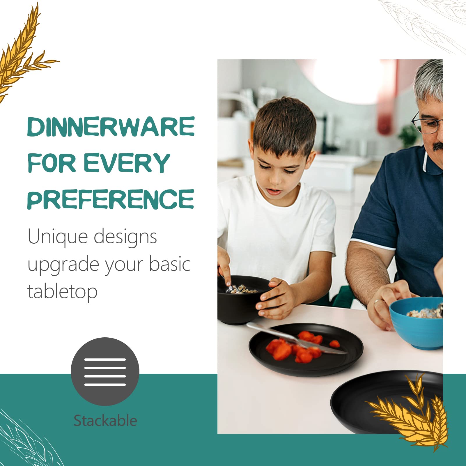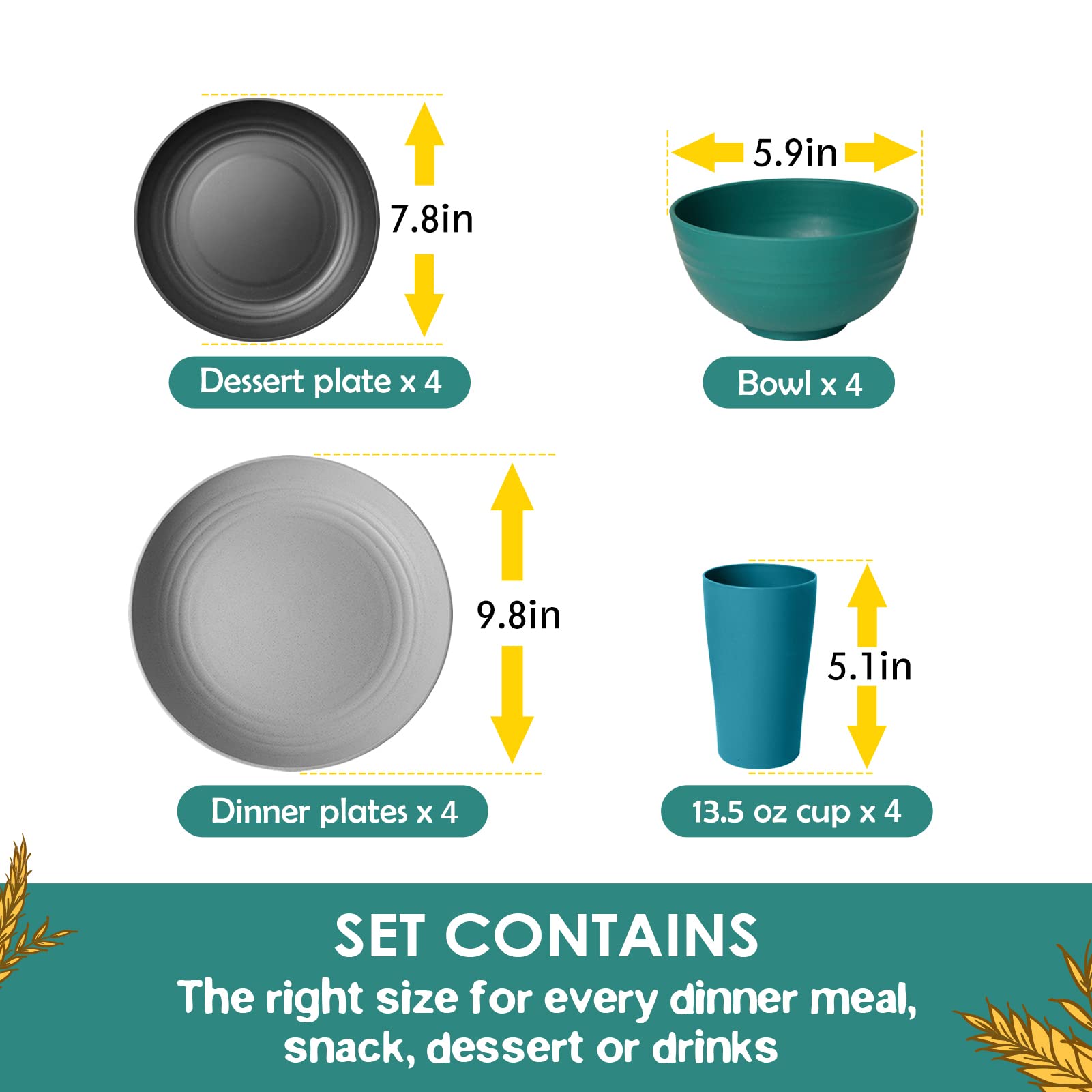 PACKAGE INCLUDE: This wheat straw dinnerware sets include 16 pieces in total. Easy to match your existing flatware.