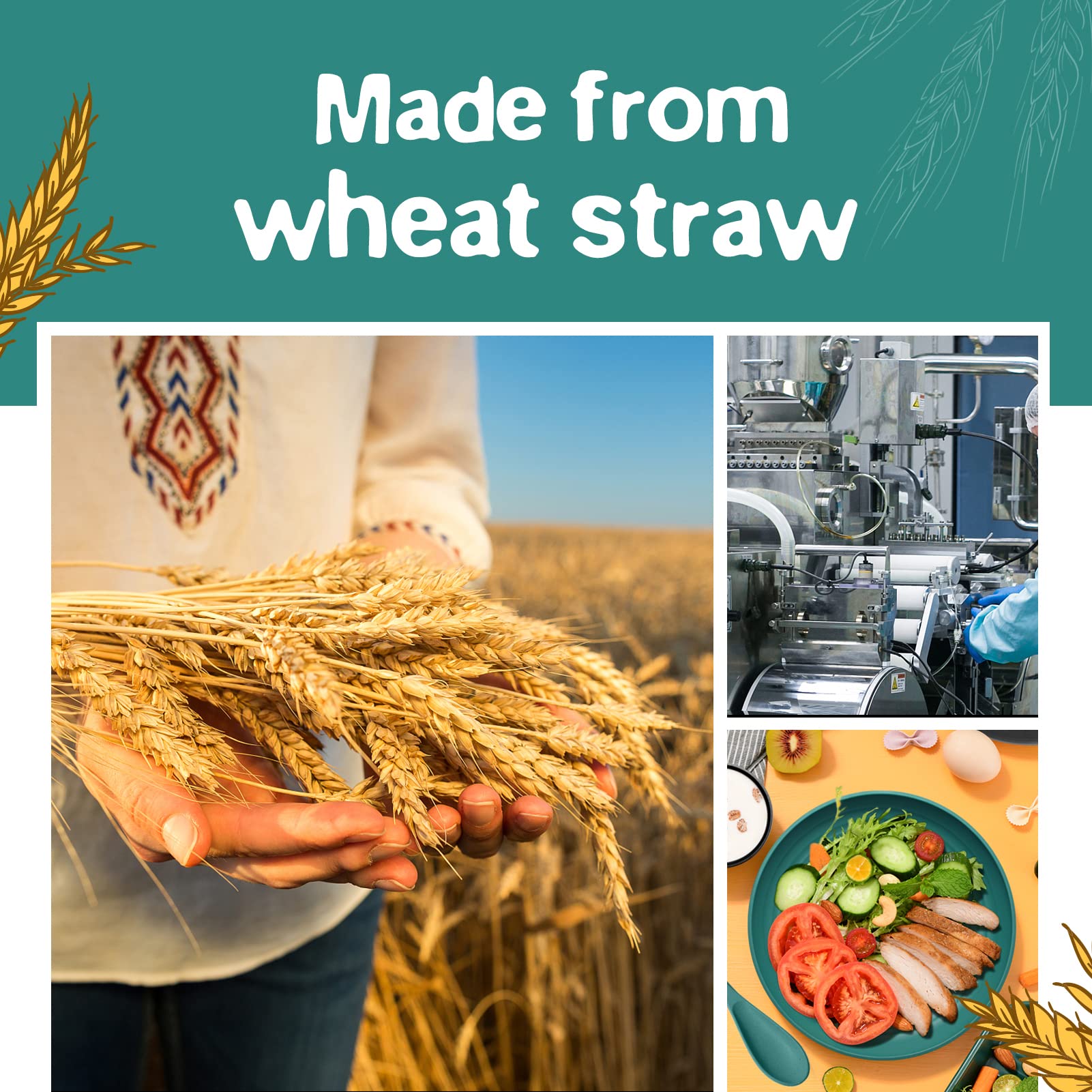 MATERIAL: Made of wheat straw and plastic material. 100% BPA free. Sturdy and durable, will not break or chip like porcelain or ceramic.