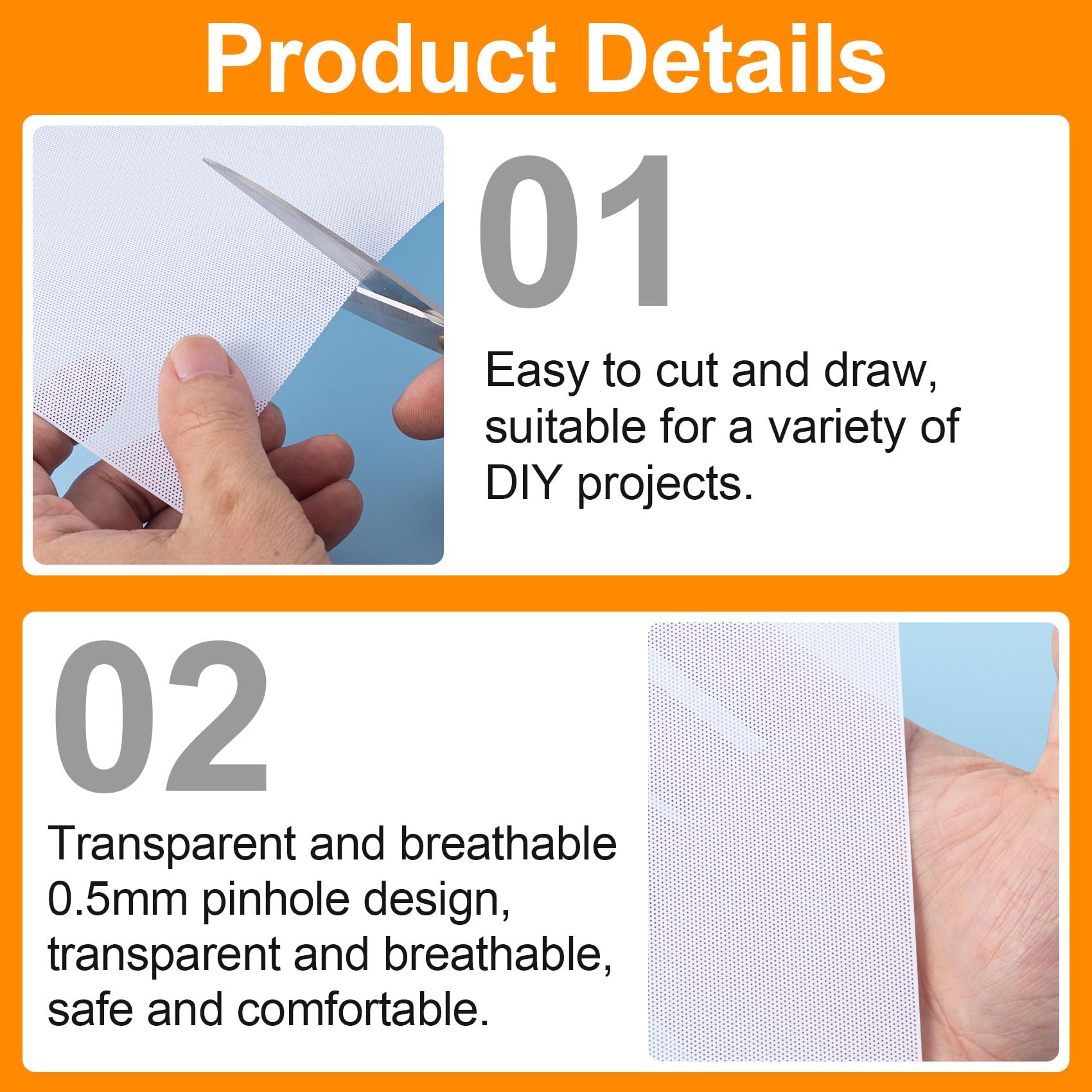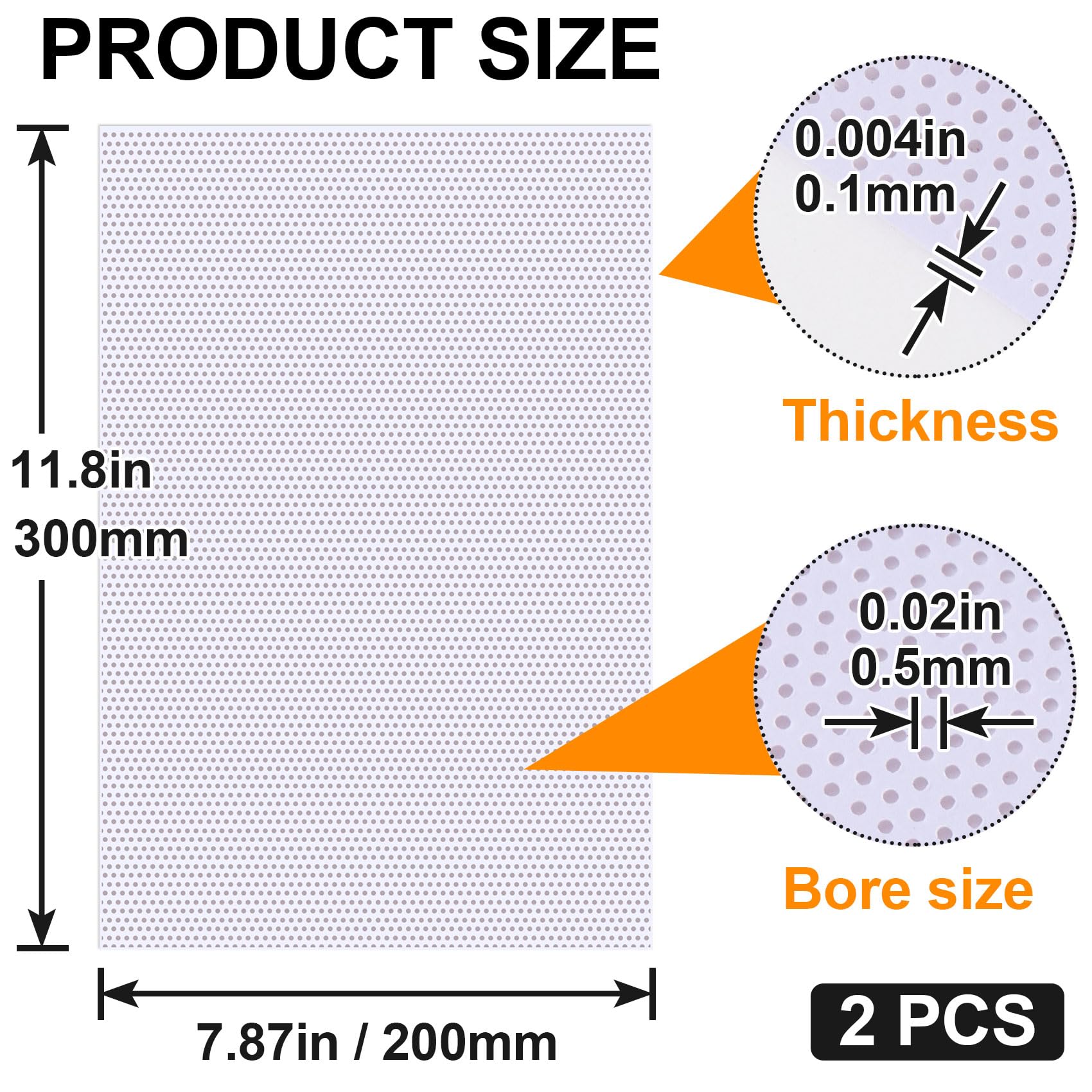 Product Description Pndeyo 2 Sheets 0.5mm White Fursuit Eyes Mesh, Waterproof Printable PVC Eye Mesh Sheet for Furry Cosplay Props Fursuits Handicrafts Making- 11.8in x 7.87in Specification: Size: each sheet length is 11.8in/ 300mm, width is 7.87in/ 200mm, thick is 0.004in/0.1mm, hole is 0.02in/0.5mm DIY Design: This fursuit eye mesh is suitable for hand painting, acrylic paint, markers, heat sublimation printing or standard printer printing, clear pattern and non-faded, can provide high-quality visual effects. You can choose your favorite pattern and create unique eye mesh. Easy to Use: These fursuit eye nets are easy to cut and shape according to your project needs, whether you're creating beast eyes, doll clothes, or art sculptures. Perfect for beginners and experienced alike. Waterproof PVC: This eye mesh for mask is made of waterproof PVC, easy to wash off and reprint when coloring errors, soft but not easy to break, breathable, scratch-resistant and wear-resistant, can be used for a long time. Multiple Use: The white mesh sheet is suitable for various craft projects, such as beast eyes, eyelids, eyelashes, doll clothes, cosplay costumes, art sculptures, cross stitch and so on. You can also use the mesh sheet to make sewer catchers in your bathroom or kitchen. Package include: 2 Sheets 0.5mm White Fursuit Eyes Mesh