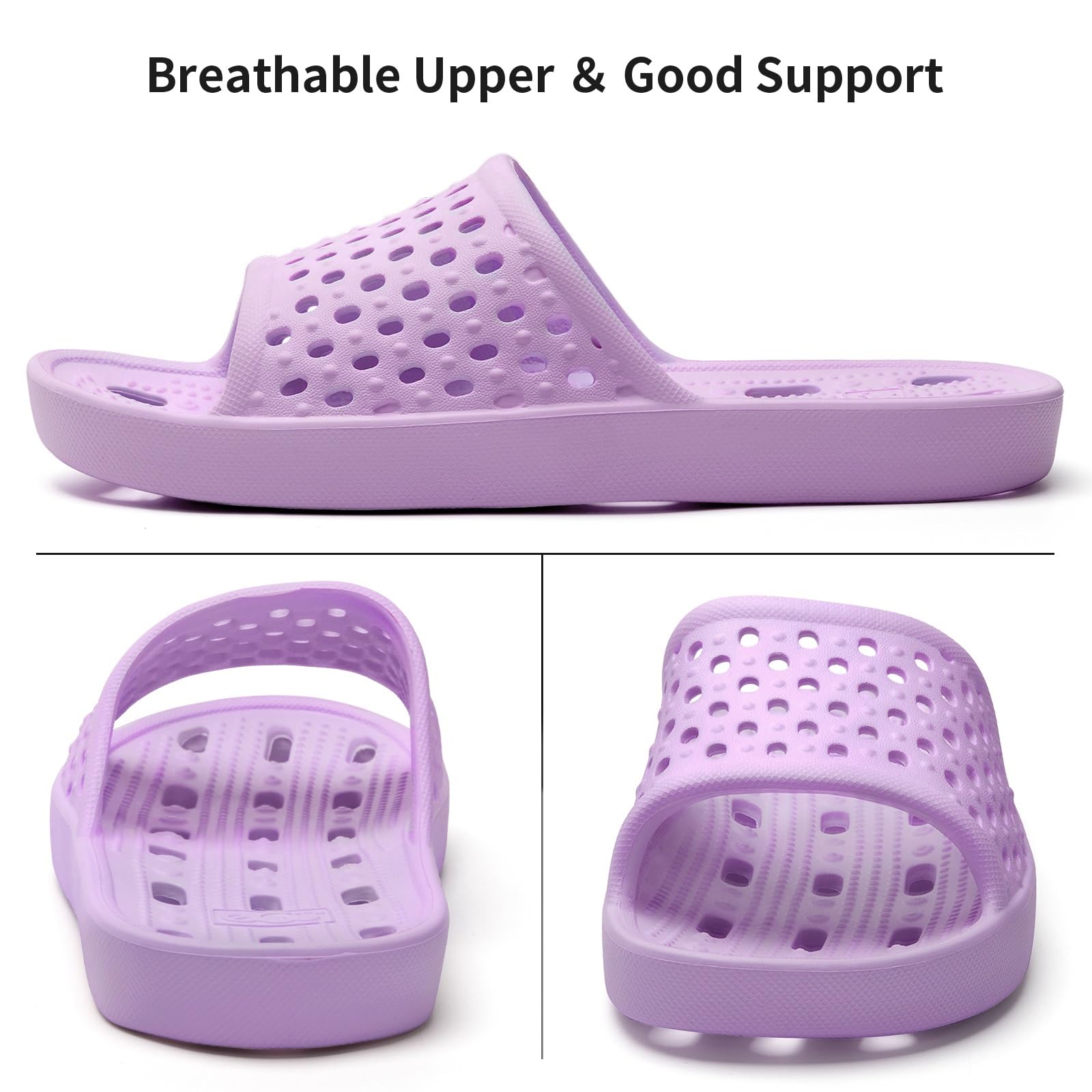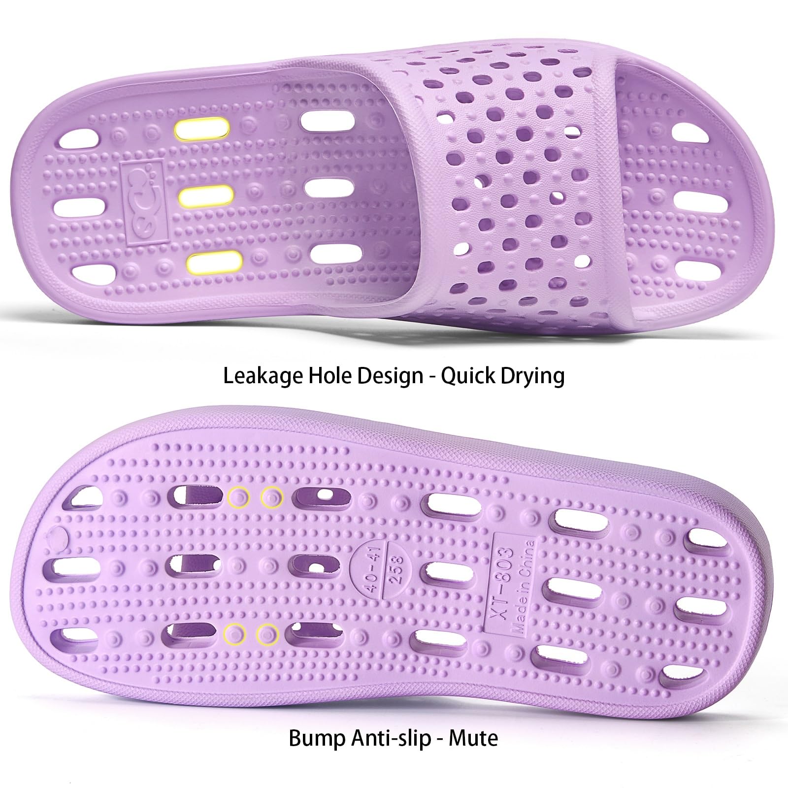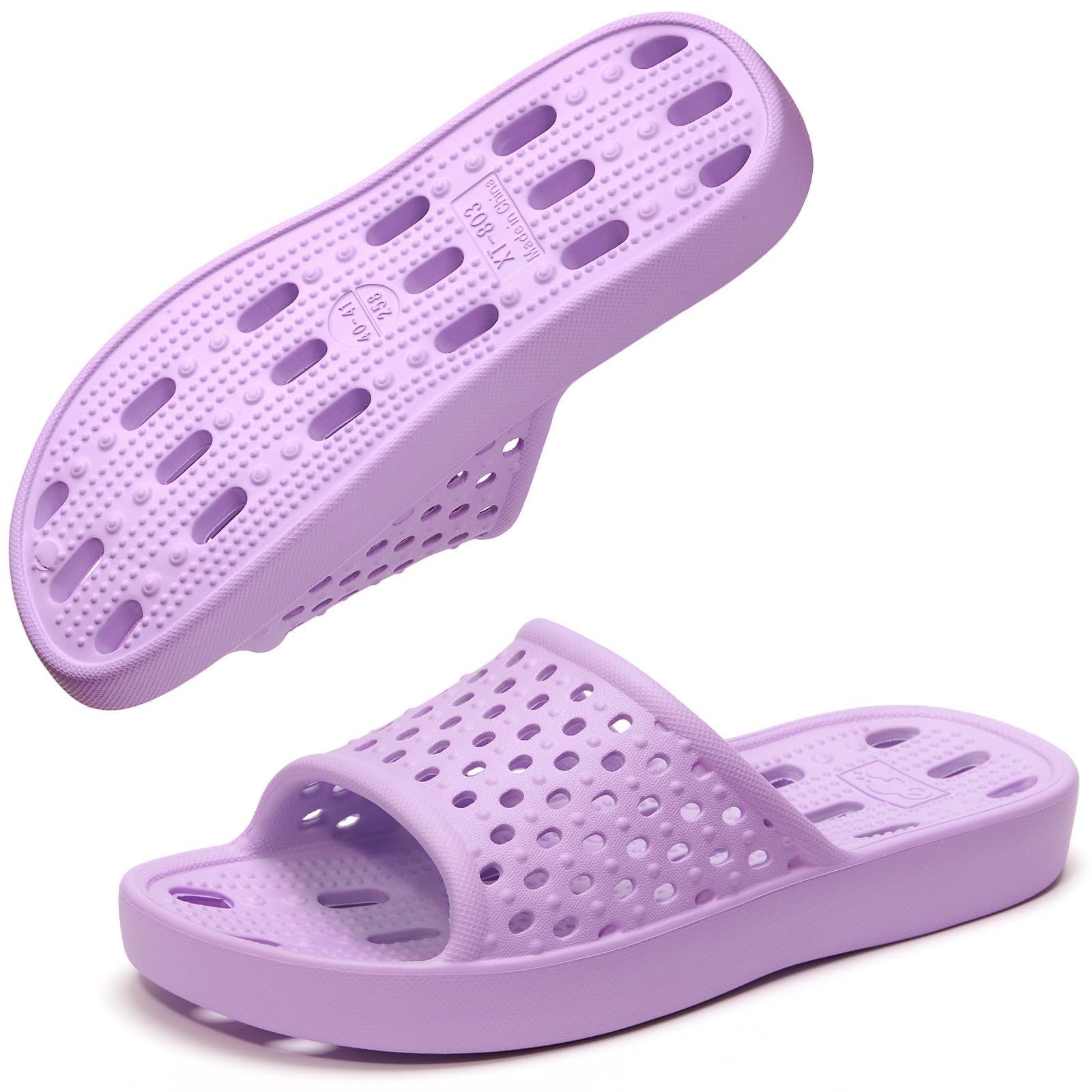 This is a very comfortable shower shoes. When you used in the shower, there are many drainage holes in the sole for quick drainage, which makes your feet dry and comfortable.